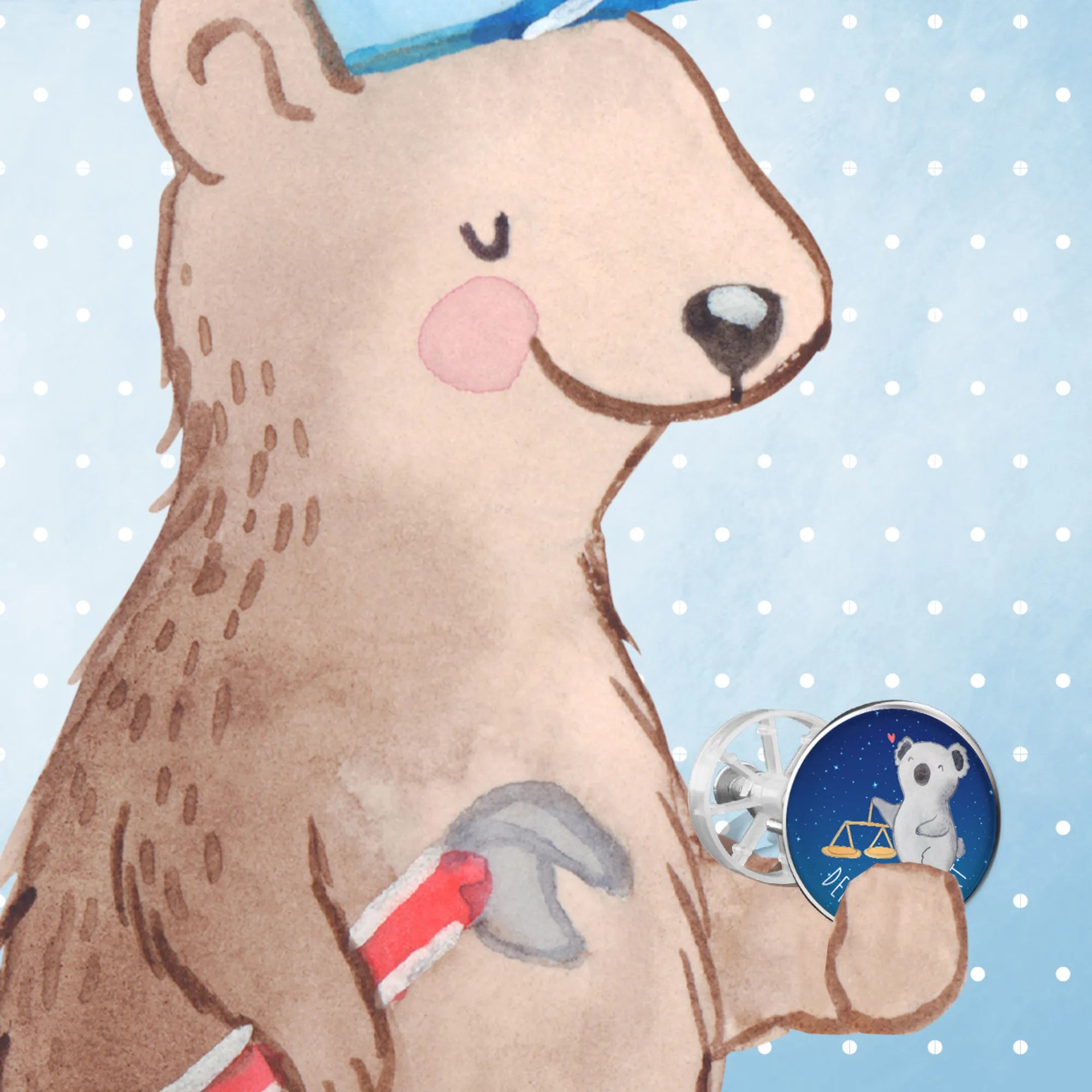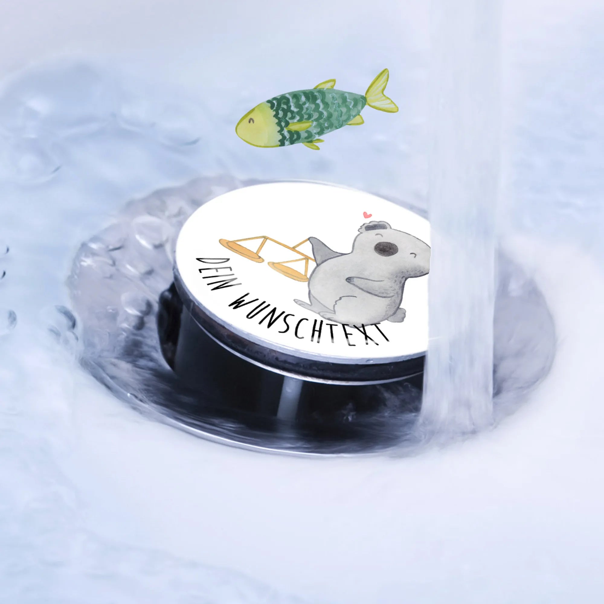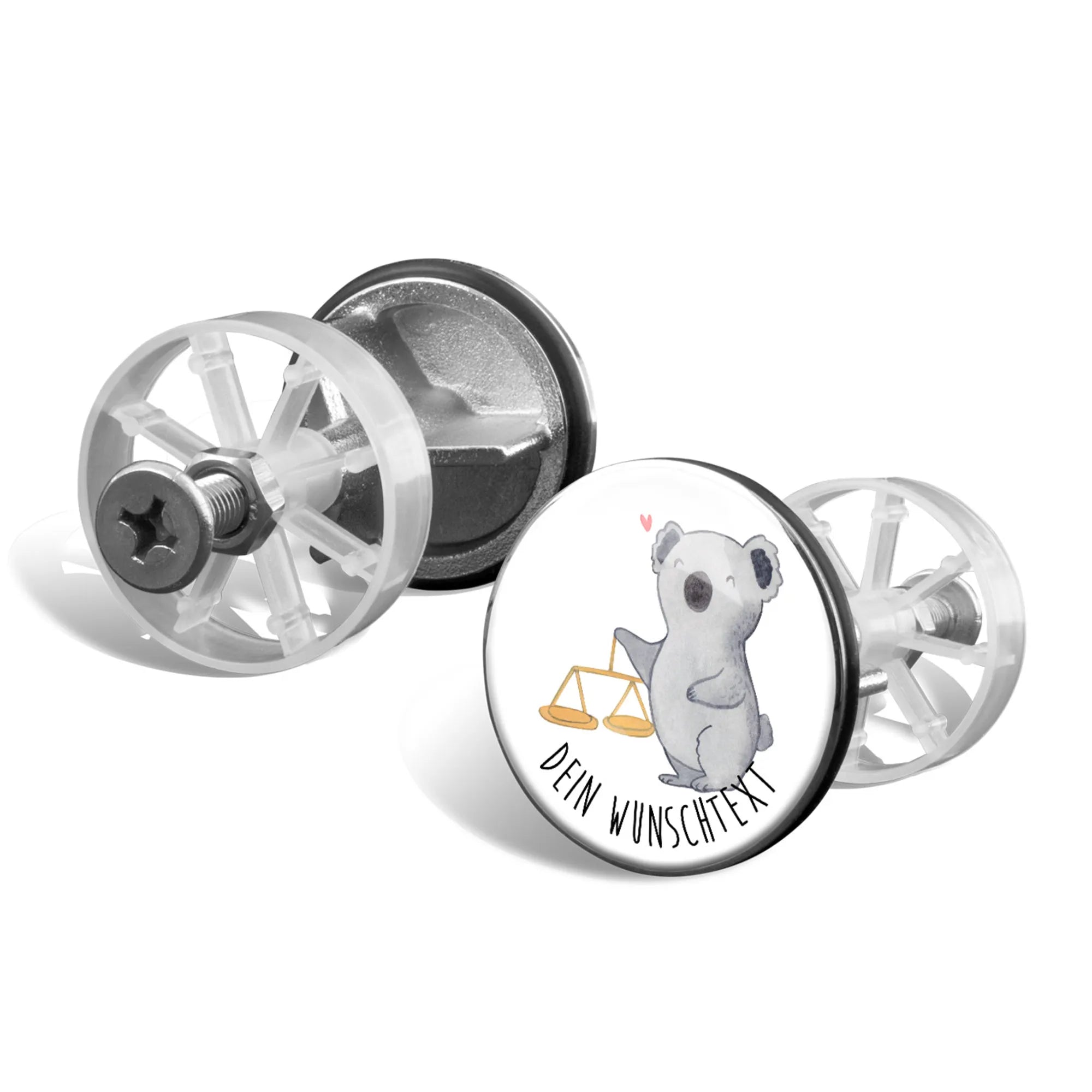 Der personalisierte Waschbeckenstöpsel mit dem zauberhaften Waage-Motiv aus der exklusiven Sternzeichen-Kollektion von Mr. & Mrs. Panda ist das perfekte Geschenk für jeden, der seinen Charakter und seine Vorlieben mit einem Hauch von Individualität zeigen möchte. Die liebevoll handgezeichnete Darstellung eines Koalas, der fröhlich neben einer klassischen Balkenwaage sitzt, symbolisiert das Sternzeichen Waage – das Zeichen für Gleichgewicht und Schönheit.