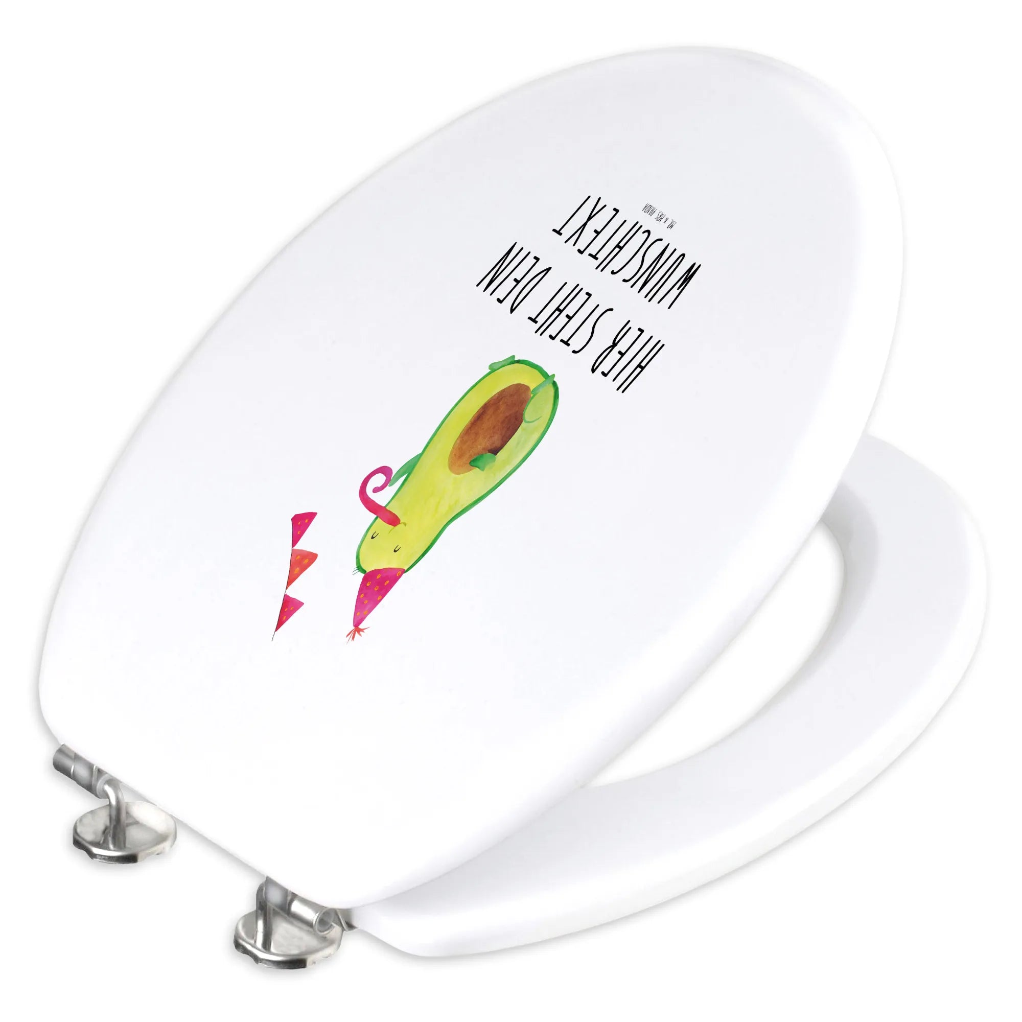 Der personalisierte WC Sitz mit dem Motive Avocado Party von Mr. & Mrs. Panda ist das perfekte Geschenk für alle, die ein bisschen mehr Freude und Charme in ihr Badezimmer bringen möchten. Jedes Mal, wenn Du den Deckel hochklappst, wirst Du von der fröhlichen Avocado in einem Partyhut begrüßt, die mit einer Partypfeife einlädt, das Leben zu feiern! Diese besondere Toilettenschüssel verbindet Funktionalität mit einem Hauch von Spaß und hebt die Laune in jedem noch so kleinen Raum.