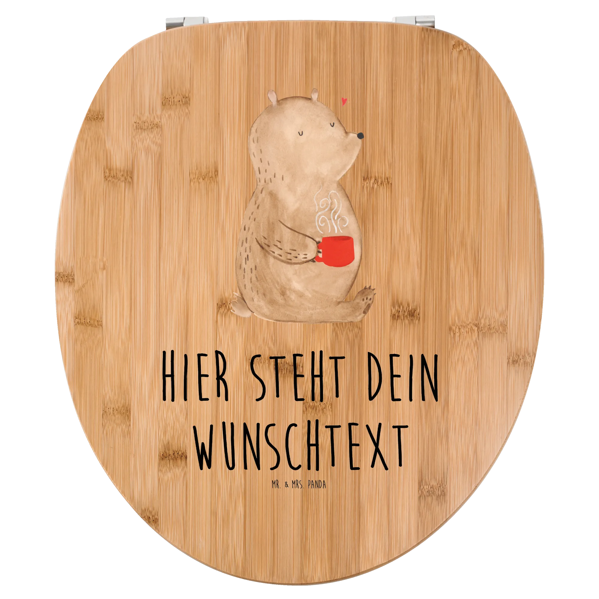 Personalisierter WC Sitz Motiv Bär Morgenkaffee - Bambus