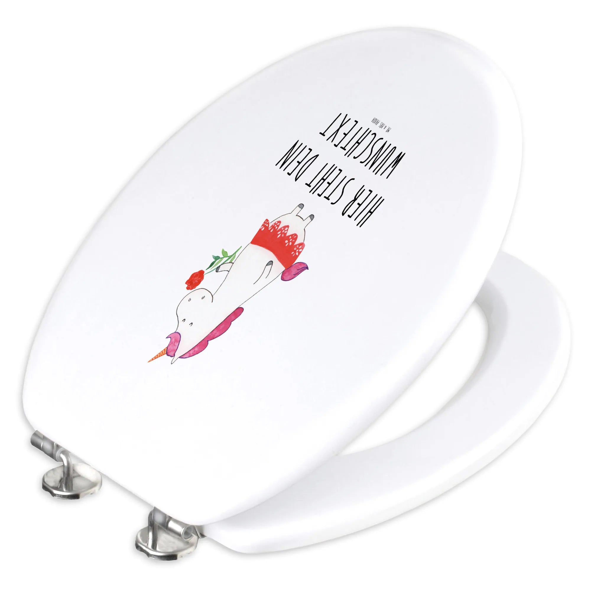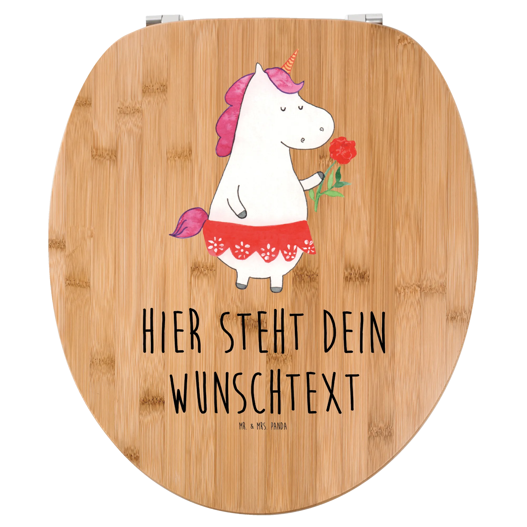 Der personalisierte WC Sitz Motiv Einhorn Dame aus der zauberhaften Einhorn-Kollektion von Mr. & Mrs. Panda ist das perfekte Geschenk für alle Einhornliebhaber und die, die eine Prise Humor in ihrem Badezimmer schätzen.