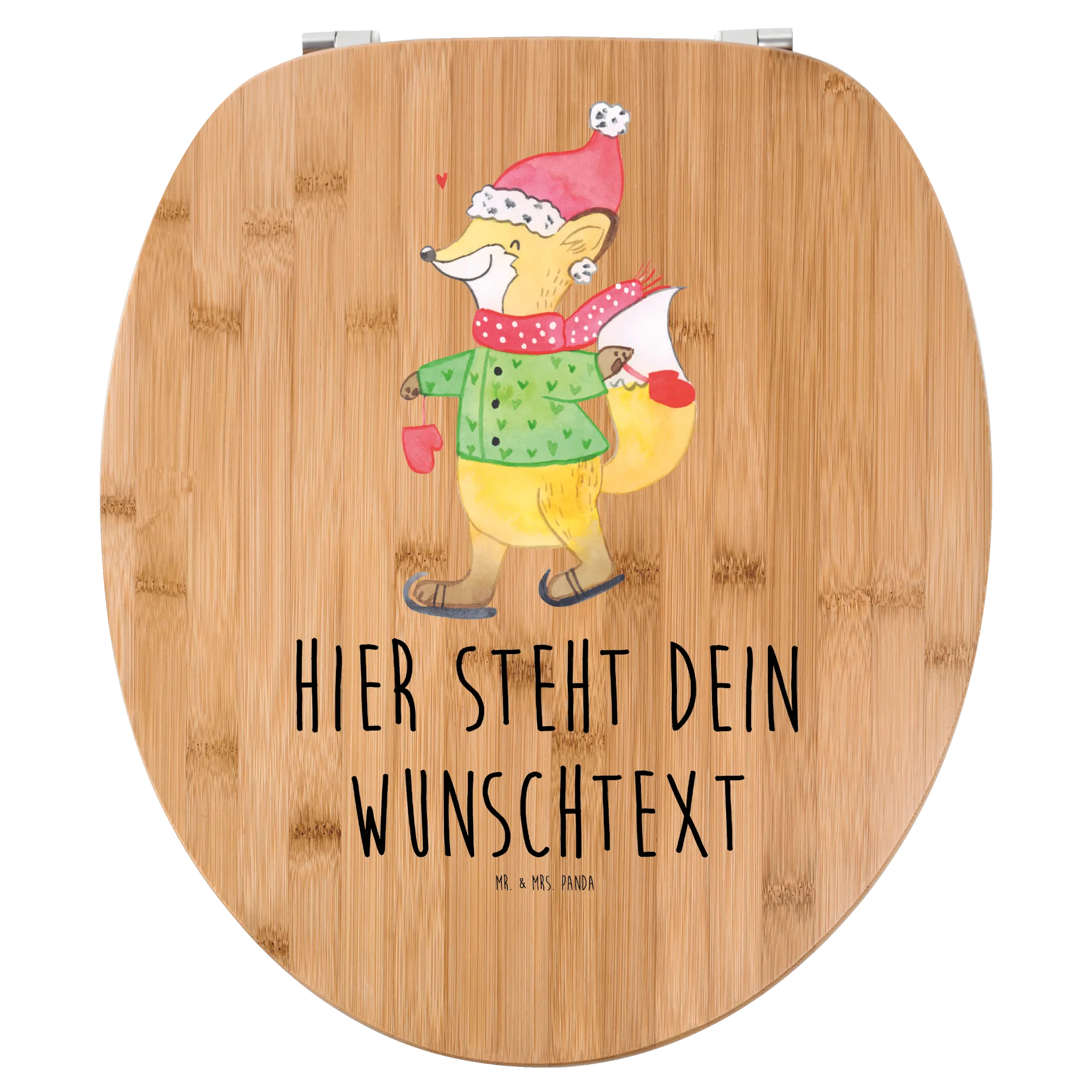 Personalisierter WC Sitz Motiv Fuchs Schlittschuhe - Bambus