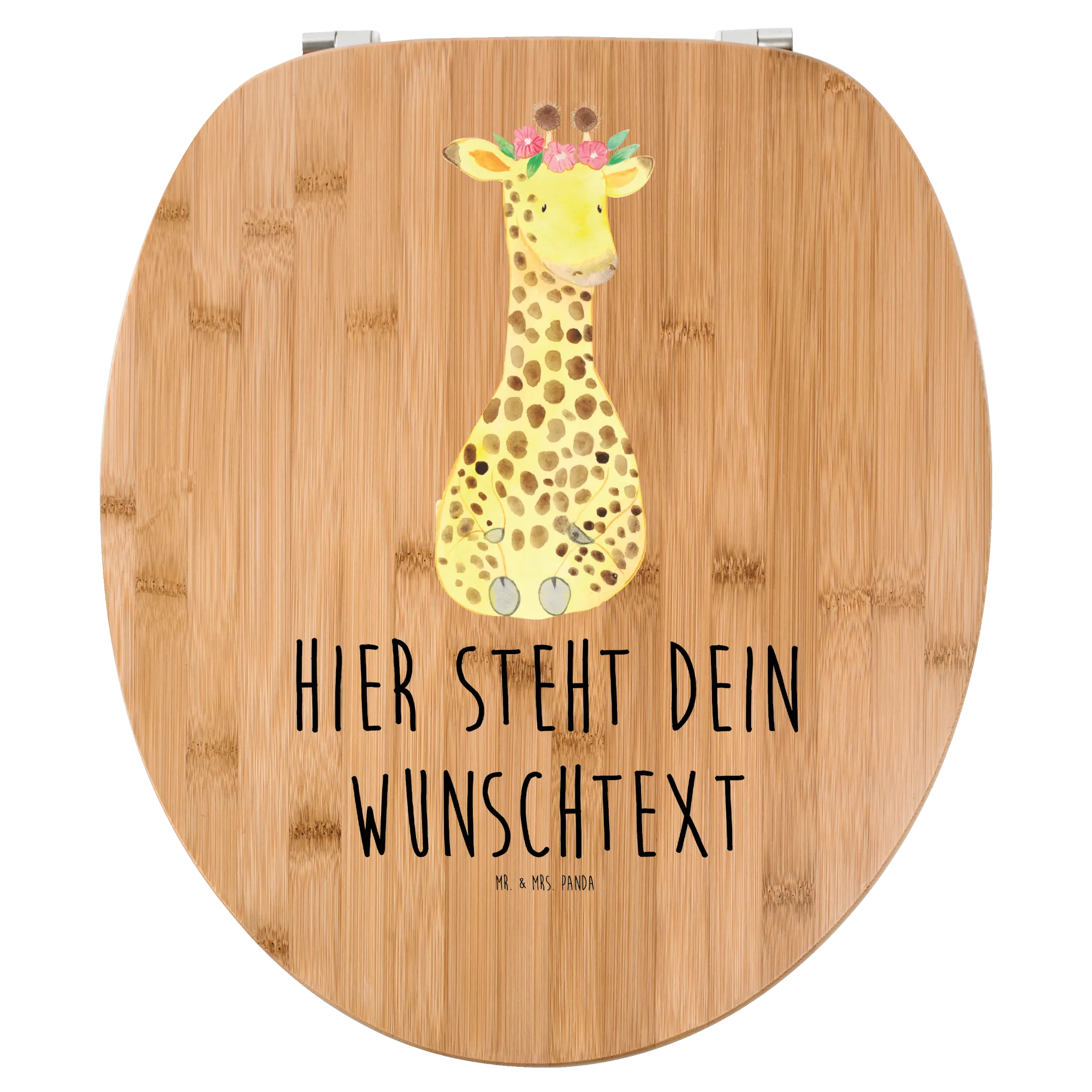 Entdecke den persönlichen WC Sitz mit dem bezaubernden Motiv 'Giraffe Blumenkranz' aus der Afrika Kollektion von Mr. & Mrs. Panda! Dieser wunderschöne und praktische Toilettendeckel ist nicht nur ein Hingucker, sondern auch ein perfektes Geschenk für Freunde oder für dein eigenes Badezimmer.