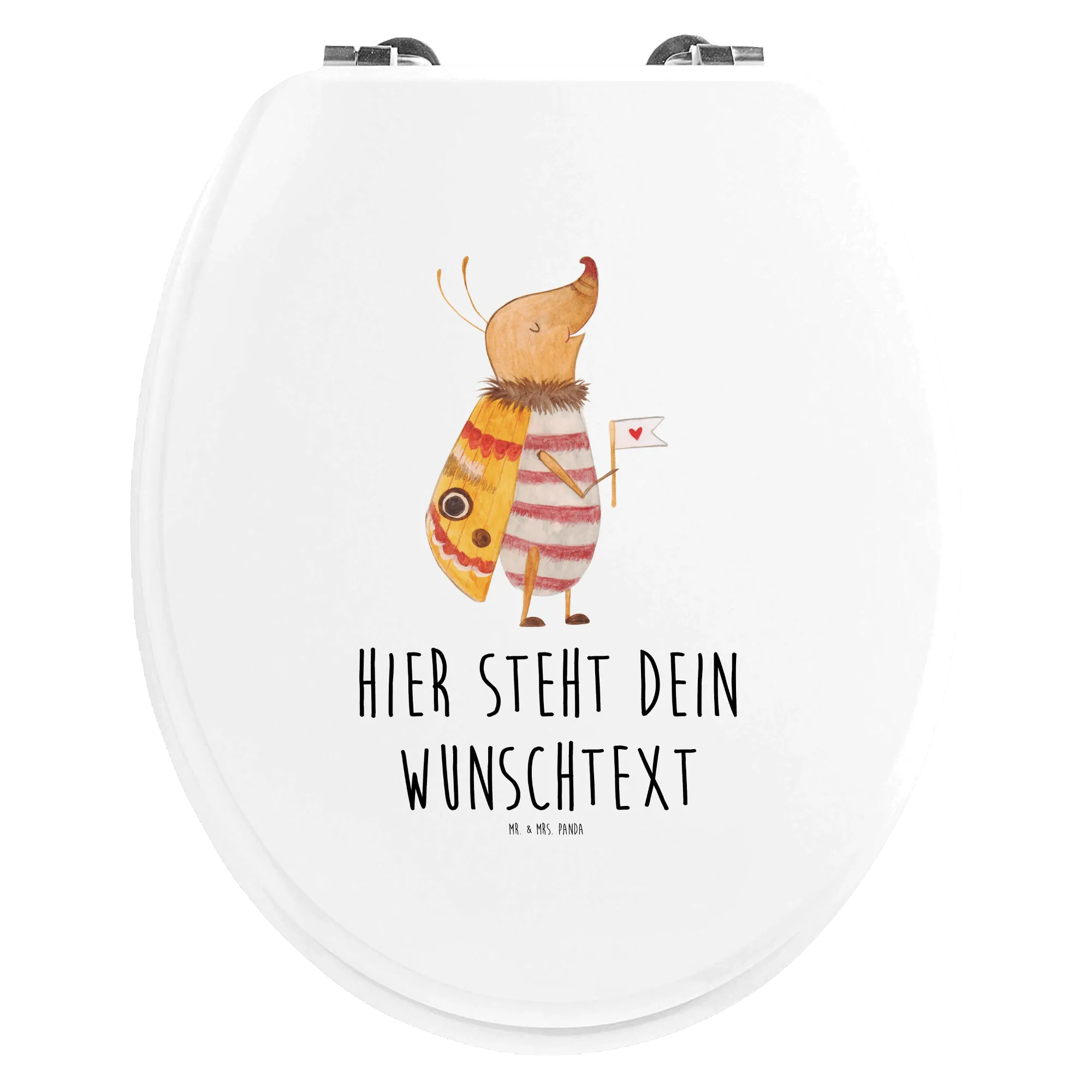 Der personalisierte WC Sitz Motiv Nachtfalter mit Fähnchen von Mr. & Mrs. Panda ist das perfekte Geschenk für jeden, der sein Badezimmer auf liebevolle Weise verschönern möchte! Mit einem süßen Nachtfalter, der fröhlich eine herzförmige Fahne in der Hand hält, bringt dieser WC Sitz lebensfrohen Charme in jede Toilette. Eignet sich hervorragend als witziges Geschenk für Freunde, Familie oder sogar für dich selbst! Überrasche deine Liebsten zu besonderen Anlässen wie Geburtstagen, Einweihungen oder einfach um jemandem eine Freude zu machen.