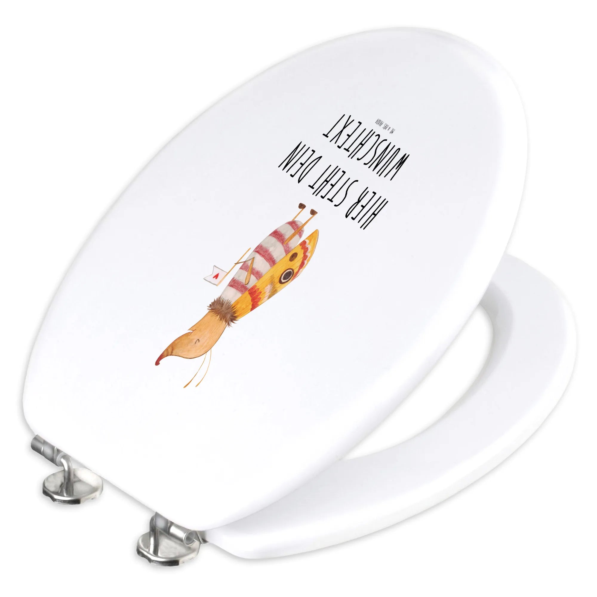 Mach das Badezimmer zu einem Wohlfühlort und genieße die Deko mit einem liebevollen Lächeln oder eine herzerwärmende Geschenkidee - der personalisierte WC Sitz Motiv Nachtfalter ist die Antwort! Mit seinem niedlichen Design und dem schlüpfrigen Spruch ist er ein echter Hingucker und der perfekte Gesprächsthema im Alltag.