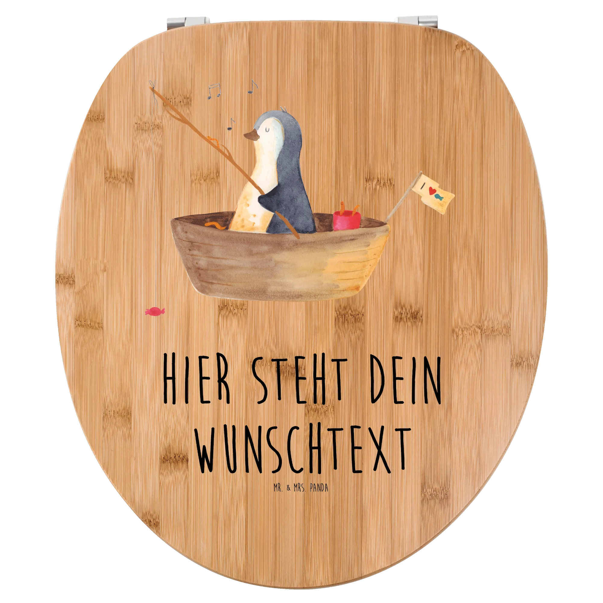 Personalisierter WC Sitz Motiv Pinguin Angelboot - Bambus