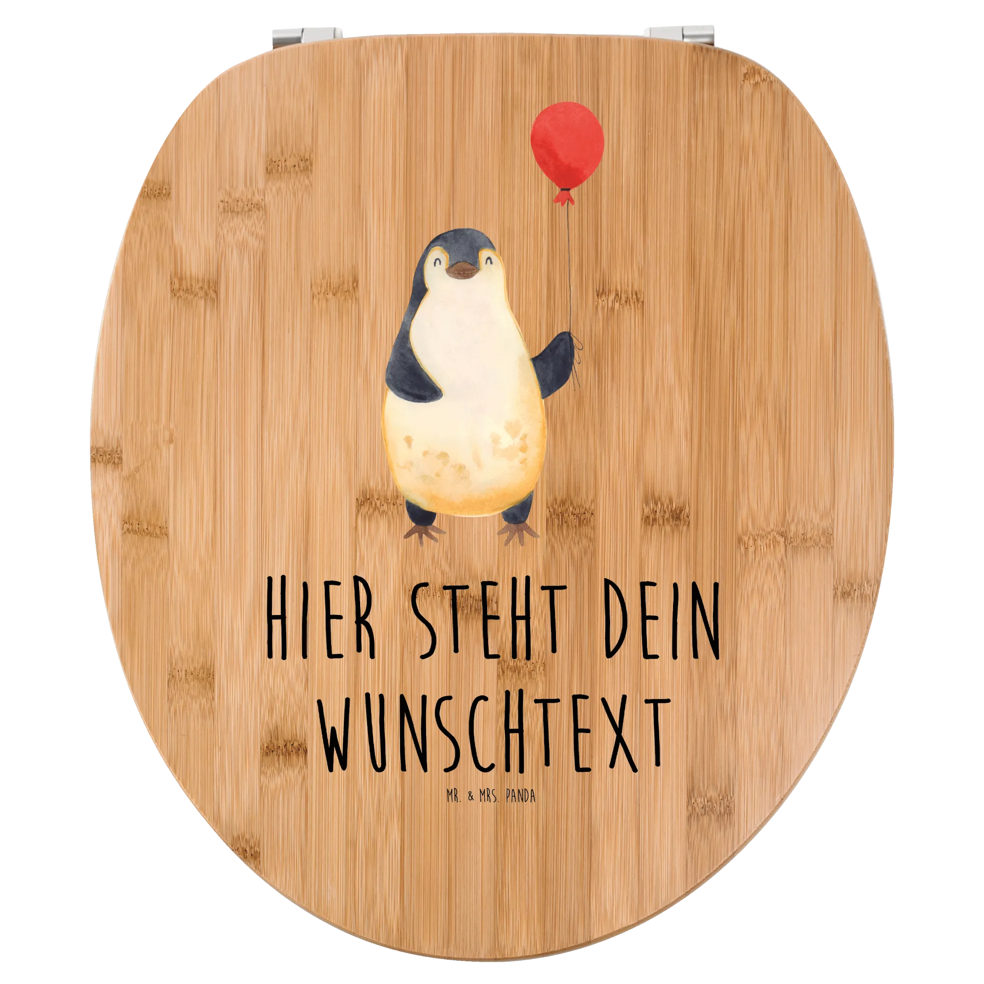 Personalisierter WC Sitz Motiv Pinguin Luftballon - Bambus
