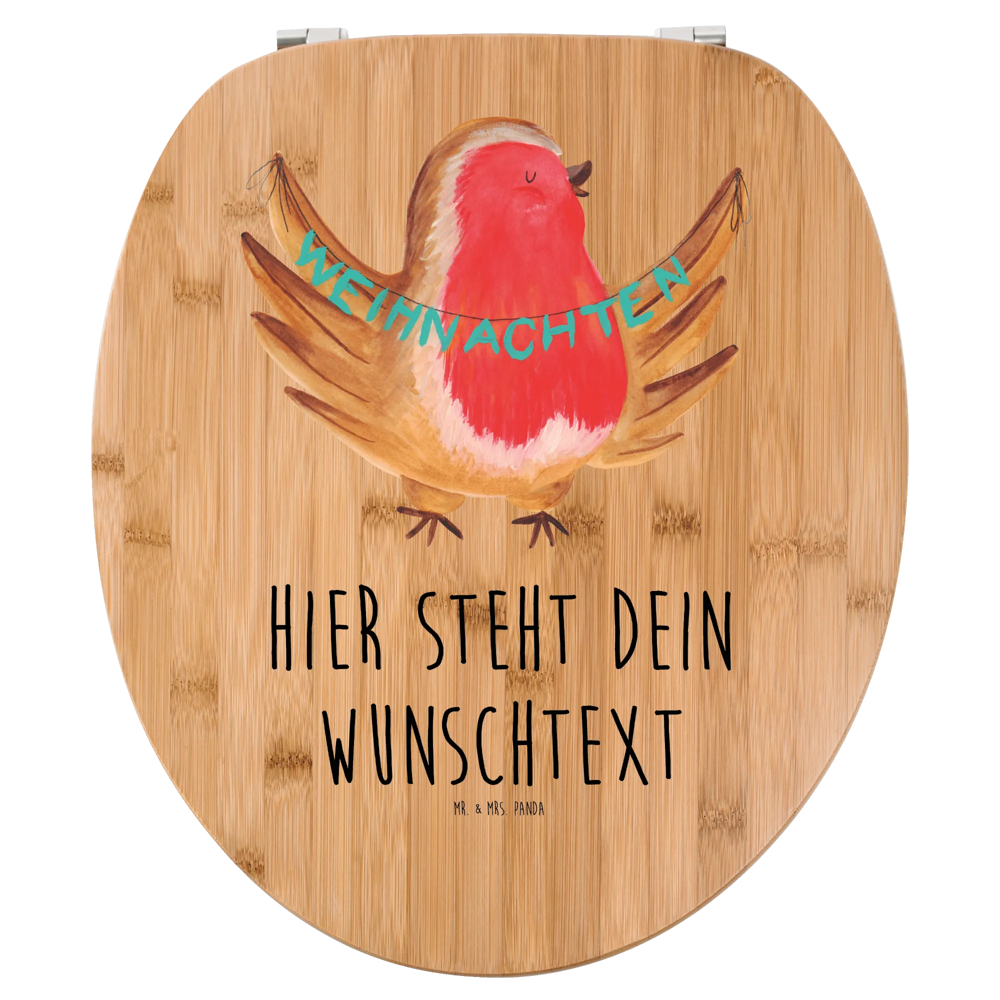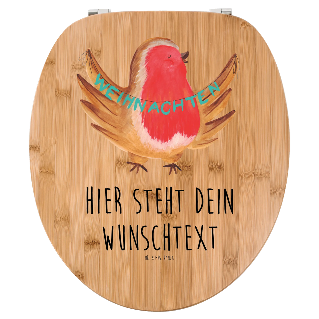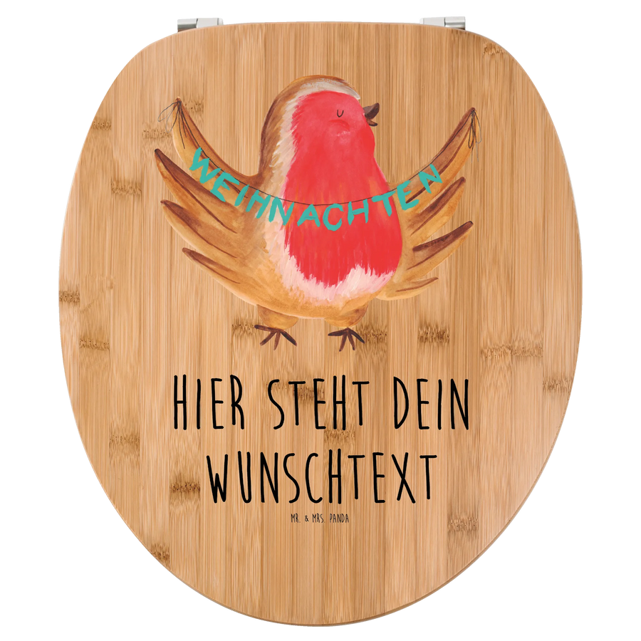 Personalisierter WC Sitz Motiv Rotkehlchen Weihnachten - Bambus