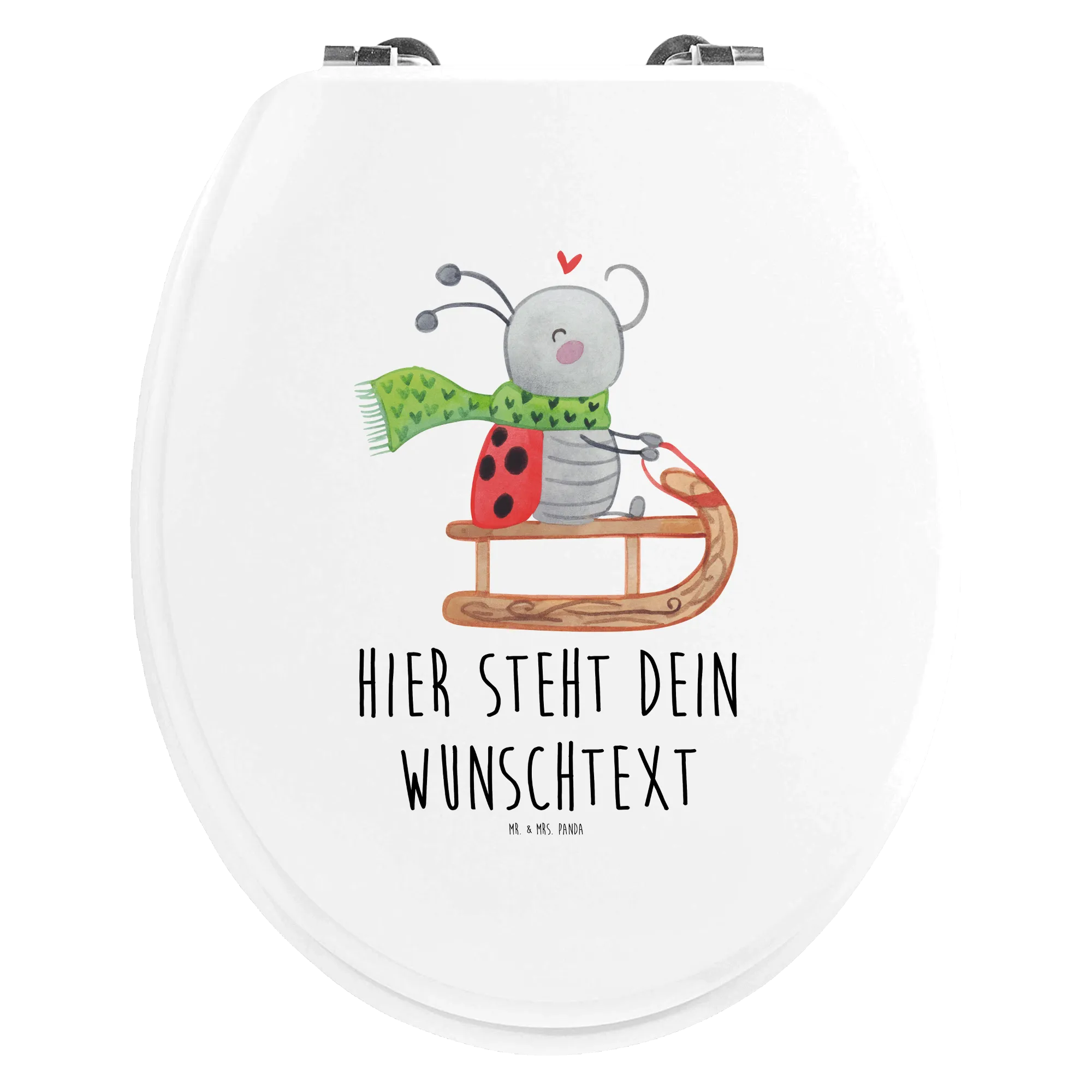 Die personalisierte WC-Sitzplatte von Mr. & Mrs. Panda mit dem fröhlichen Motiv "Smörle Rodeln" ist das perfekte Geschenk für alle, die die Winterzeit lieben! Wenn du nach einer witzigen und praktischen Idee suchst, um deinem Badezimmer einen Hauch von Freude zu verleihen, dann ist dieser personalisierte Toilettendeckel genau das Richtige für dich. Der hübsche Marienkäfer Smörle, der mit seinem grünen Schal auf einem Schlitten durch die Winterlandschaft flitzt, zaubert ein Lächeln in jedes Gesicht und sorgt für heitere Stimmung. Ob für die eigenen vier Wände oder als Geschenk für Freunde oder Familie, diese Klobrille ist ein echter Hingucker.