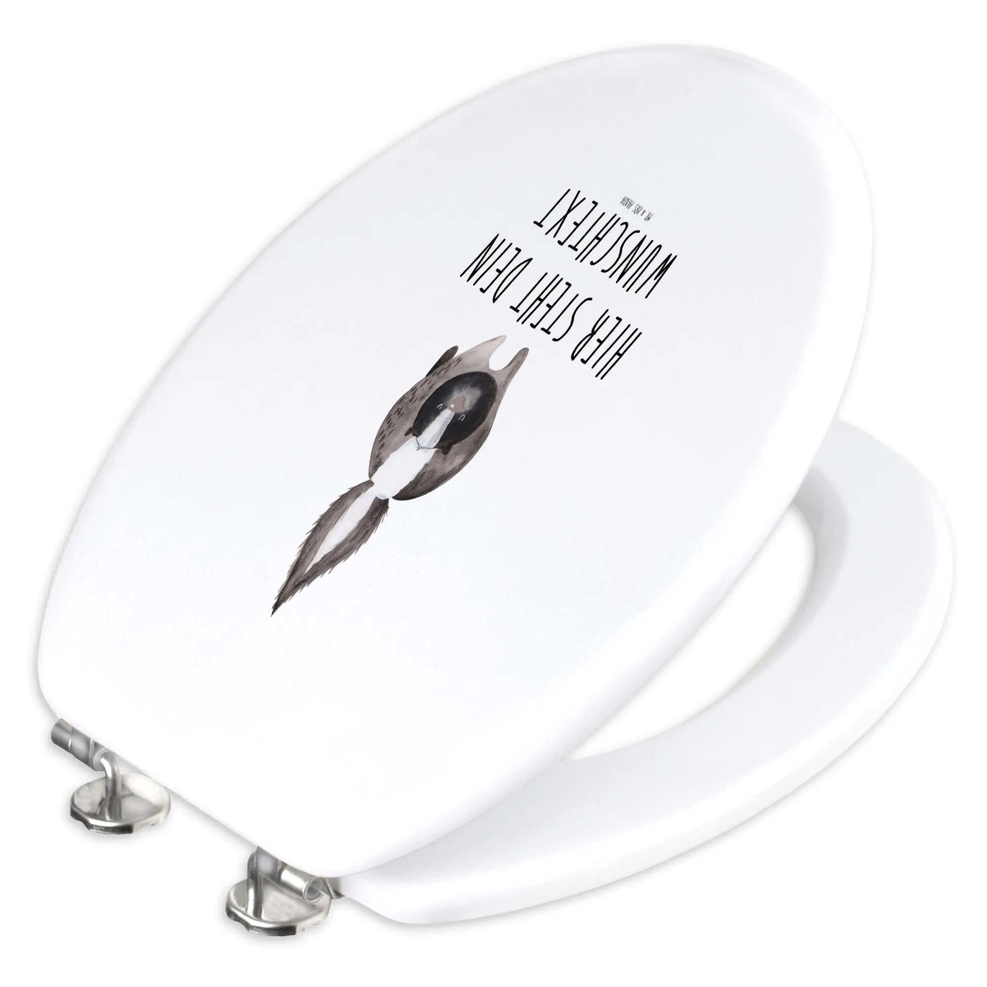 Das besondere an diesem Produkt ist nicht nur das niedliche Motiv: Es ist auch eine wunderschöne Hommage an unseren treuen Freund, Herrn Blume, dem geliebten Stinktier von Mrs. Panda, das neun lange Jahre an ihrer Seite war. Wir haben uns Mühe gegeben, die perfekten Motive zu kreieren, die sowohl Lebensfreude als auch eine persönliche Note in dein Leben bringen. Hol dir jetzt diesen einzigartigen WC Sitz und setze ein Zeichen der Individualität in deinem Zuhause!