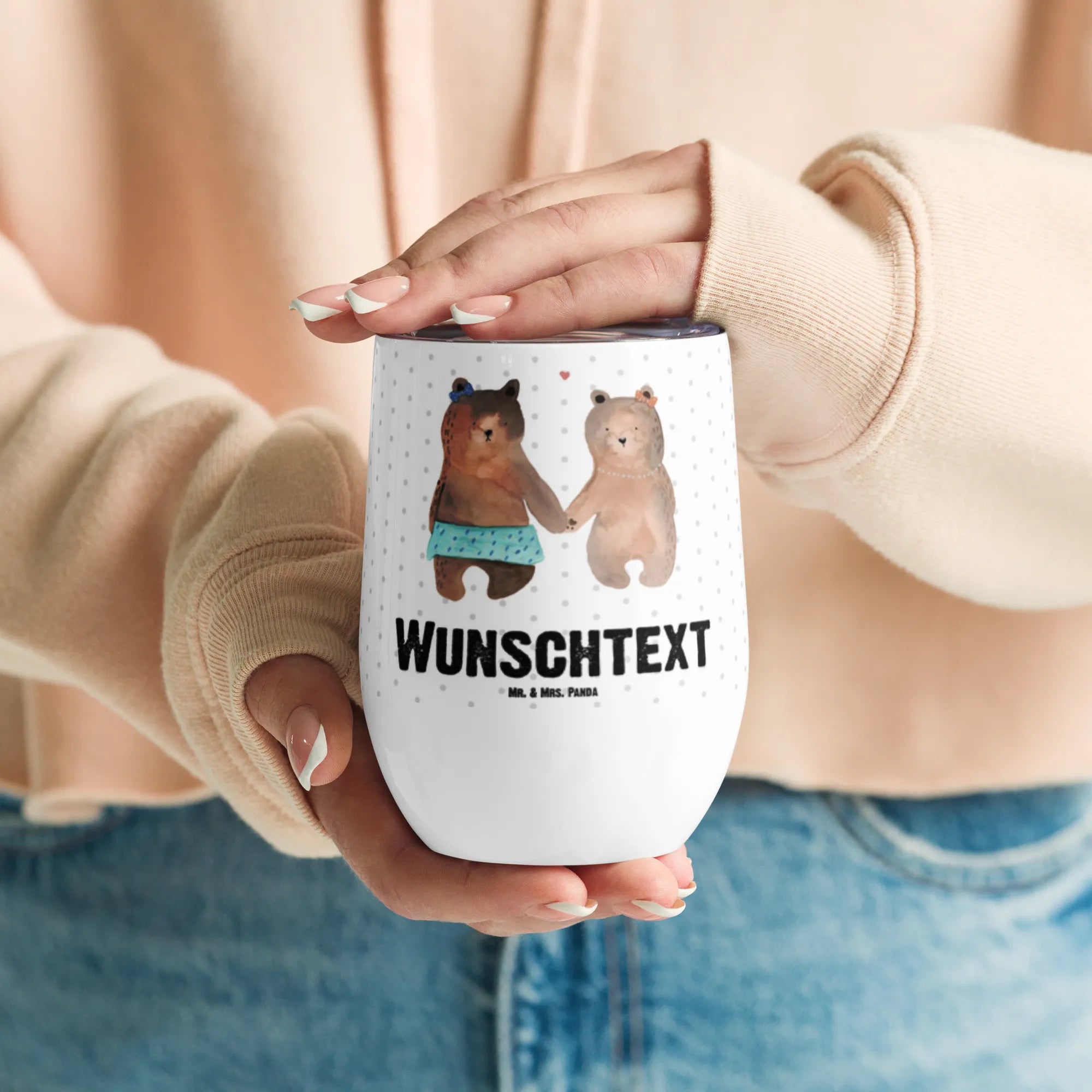 Entdecke den perfekten Weinbecher für deine beste Freundin mit unserem personalisierter Weinbecher aus der Bären-Kollektion von Mr. & Mrs. Panda! Mit einem zauberhaften Motiv von zwei süßen Bärenmädchen, die sich an den Händen halten, ist dieser Becher nicht nur ein praktisches Trinkgefäß für heiße Getränke wie Glühwein, sondern auch ein liebevolles Zeichen der Freundschaft.