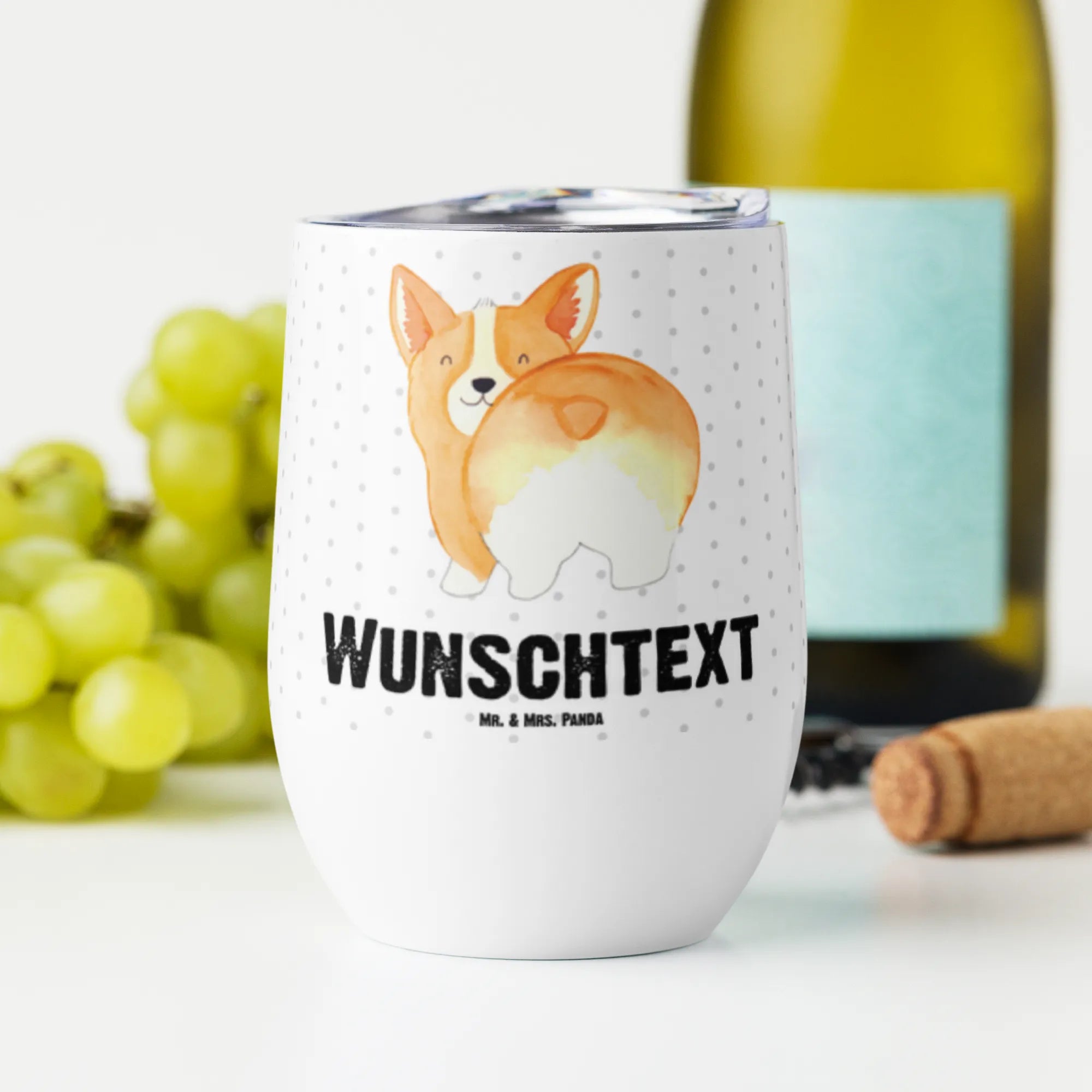 Der personalisierte Weinbecher mit dem niedlichen Corgie Po von Mr. & Mrs. Panda ist das perfekte Geschenk für jeden Hundeliebhaber! Dieser Weinbecher ist nicht nur ein außergewöhnliches Accessoire für dein Zuhause, sondern auch der ideale Begleiter für unterwegs. Er hält deine heißen Getränke wie Glühwein oder Tee über Stunden auf perfekter Temperatur – ideal für entspannte Abende im Freien oder gemütliche Stunden mit Freunden.