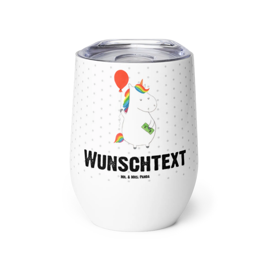 Entdecke den wunderschönen personalisierten Weinbecher mit dem bezaubernden Einhorn Luftballon Motiv aus der Einhorn-Kollektion von Mr. & Mrs. Panda! 🌟 Dieser hochwertige edelstahl ___Weinbecher___ ist mehr als nur ein Trinkgefäß – er ist eine Einladung, das Leben in vollen Zügen zu genießen.