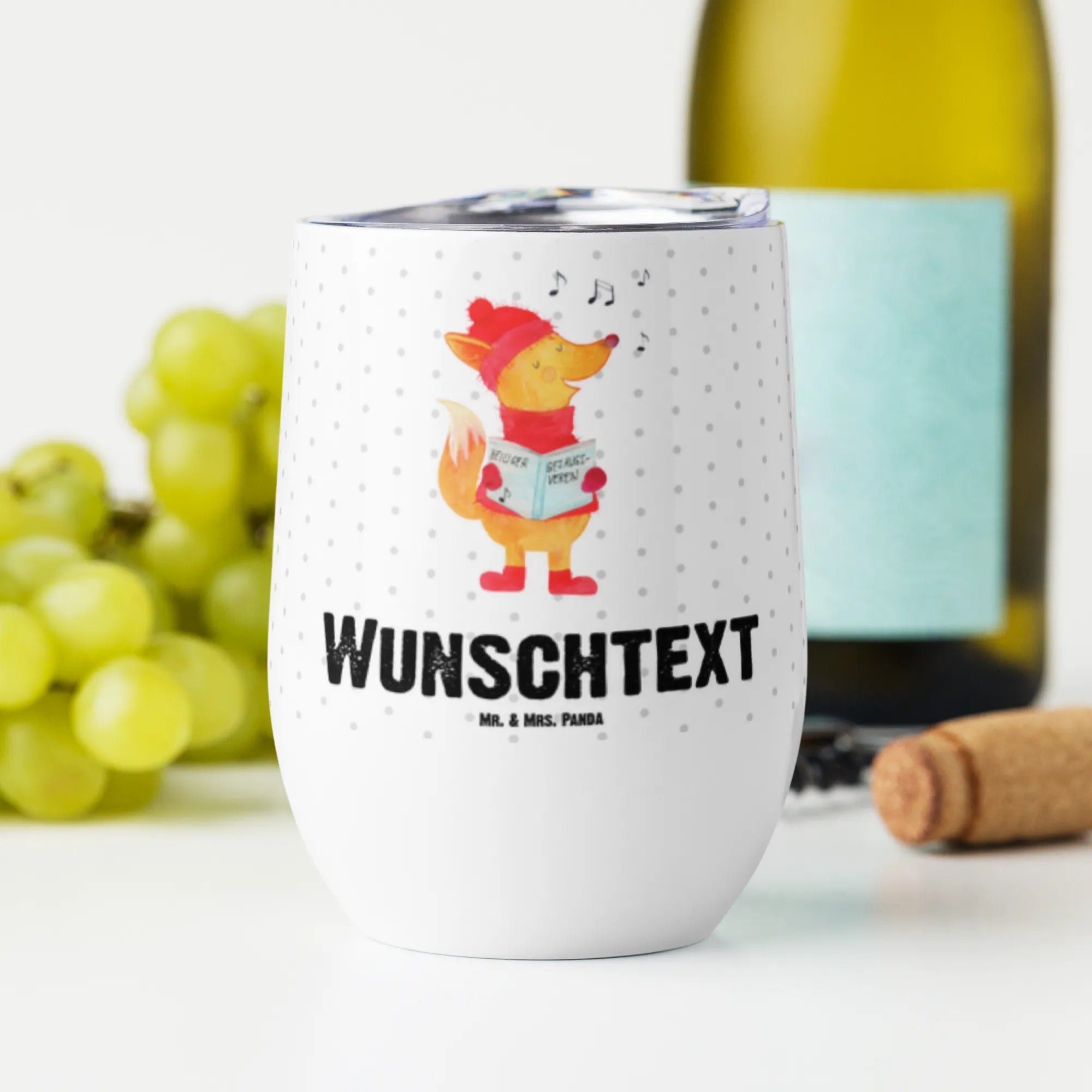 Du suchst nach dem perfekten Geschenk für den Winter? Dann ist unser personalisierten Weinbecher mit dem liebevollen Motiv des "Fuchs Sängers" aus der Winter Kollektion von Mr. & Mrs. Panda genau das Richtige!