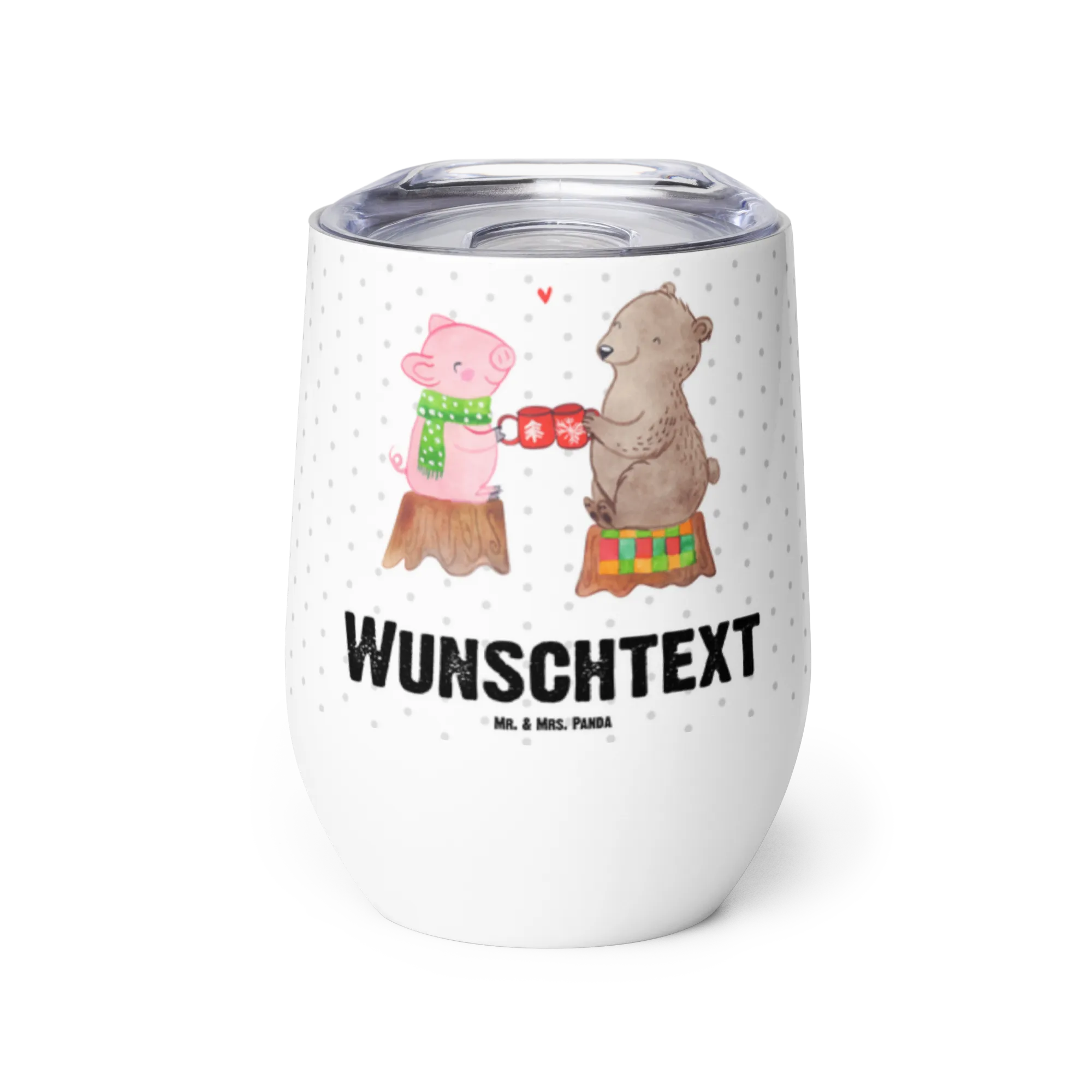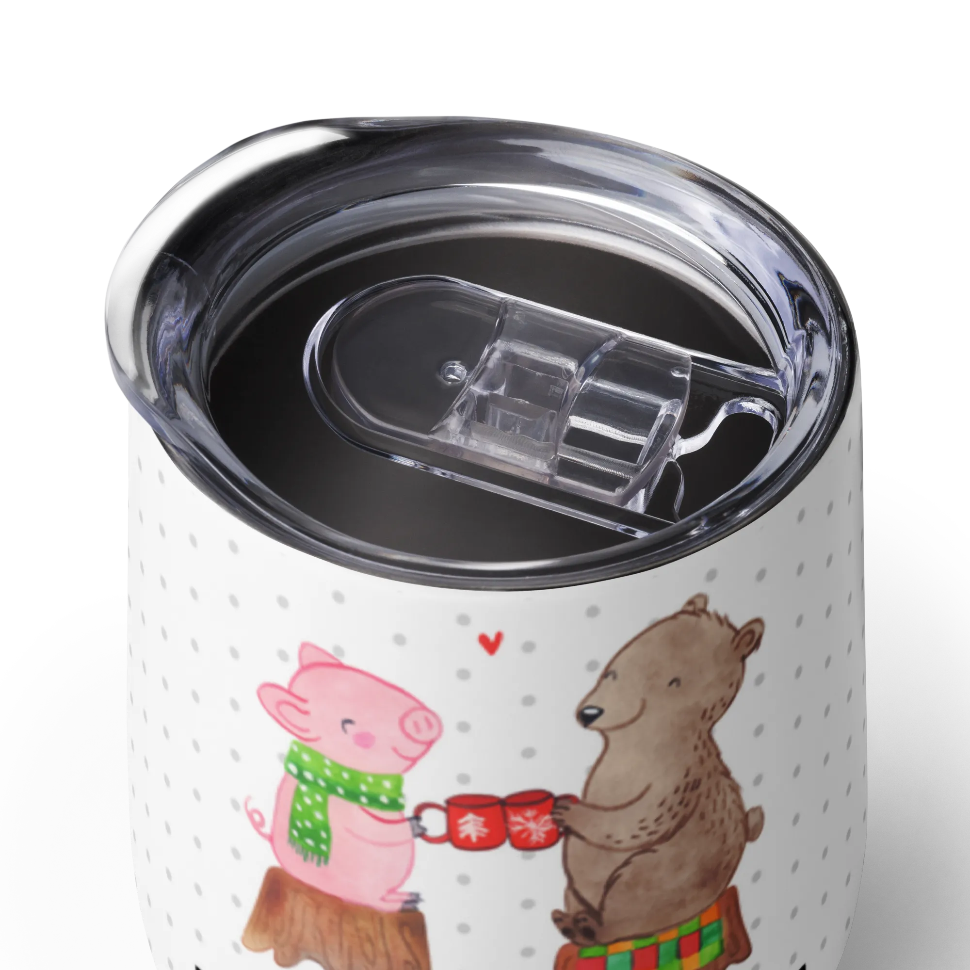 Mit der Winter Kollektion von Mr. & Mrs. Panda verbringst du zauberhafte Momente im Kreise deiner Liebsten. Die Kombination aus hochwertigem Edelstahl und einem einzigartigen Design macht diesen personalisierten Weinbecher zu einem echten Hingucker. Er ist nicht spülmaschinenfest, lässt sich jedoch leicht von Hand reinigen.