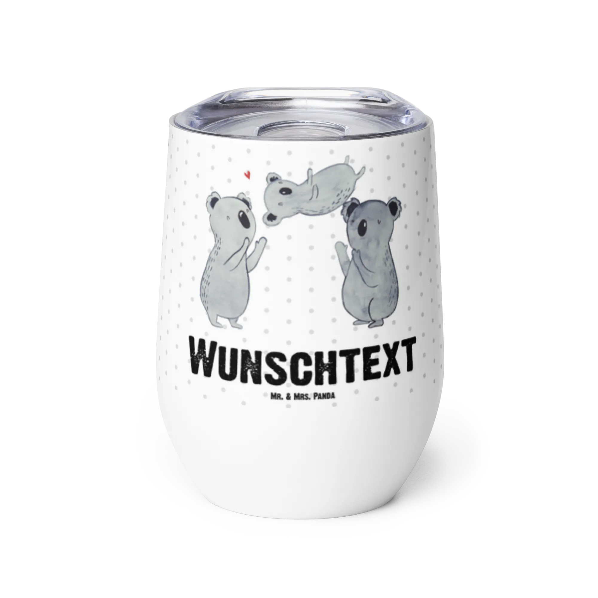 Der personalisierte Weinbecher 'Koala Feiern Sich' von Mr. & Mrs. Panda ist das perfekte Geschenk für den nächsten besonderen Anlass! Egal, ob du einem lieben Freund, der Familie oder deinen Eltern eine Freude machen möchtest, dieser hochwertige Edelstahl-Weinbecher sorgt für leuchtende Augen und ein breites Lächeln.