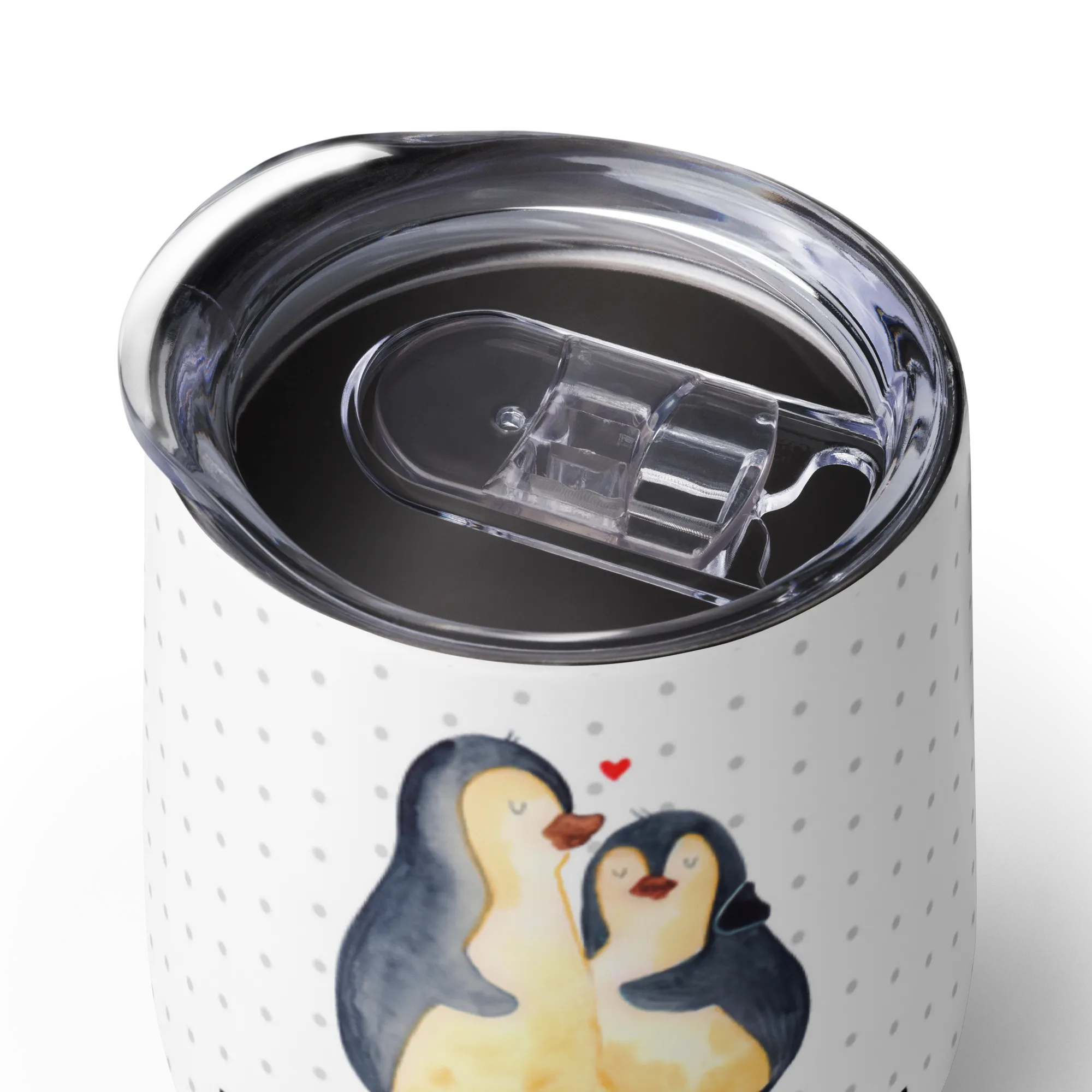 Entdecke den personalisierten Weinbecher mit dem bezaubernden Motiv 'Pinguine Einschlafen' von Mr. & Mrs. Panda! Dieser wunderschöne Becher ist das perfekte Geschenk für jeden Anlass, sei es zum Valentinstag, für den Jahrestag oder einfach als Liebesbeweis für deinen Partner oder deine Partnerin. Die einzigartigen Pinguine, die liebevoll aneinander gekuschelt sind und mit einem kleinen Herz über ihnen, strahlen pure Zuneigung aus. Mit dem liebevollen Spruch 'Ich liebe es, neben dir einzuschlafen und aufzuwachen' wird dieser Weinbecher zu einem ganz besonderen Unikat, das die Herzen höher schlagen lässt.