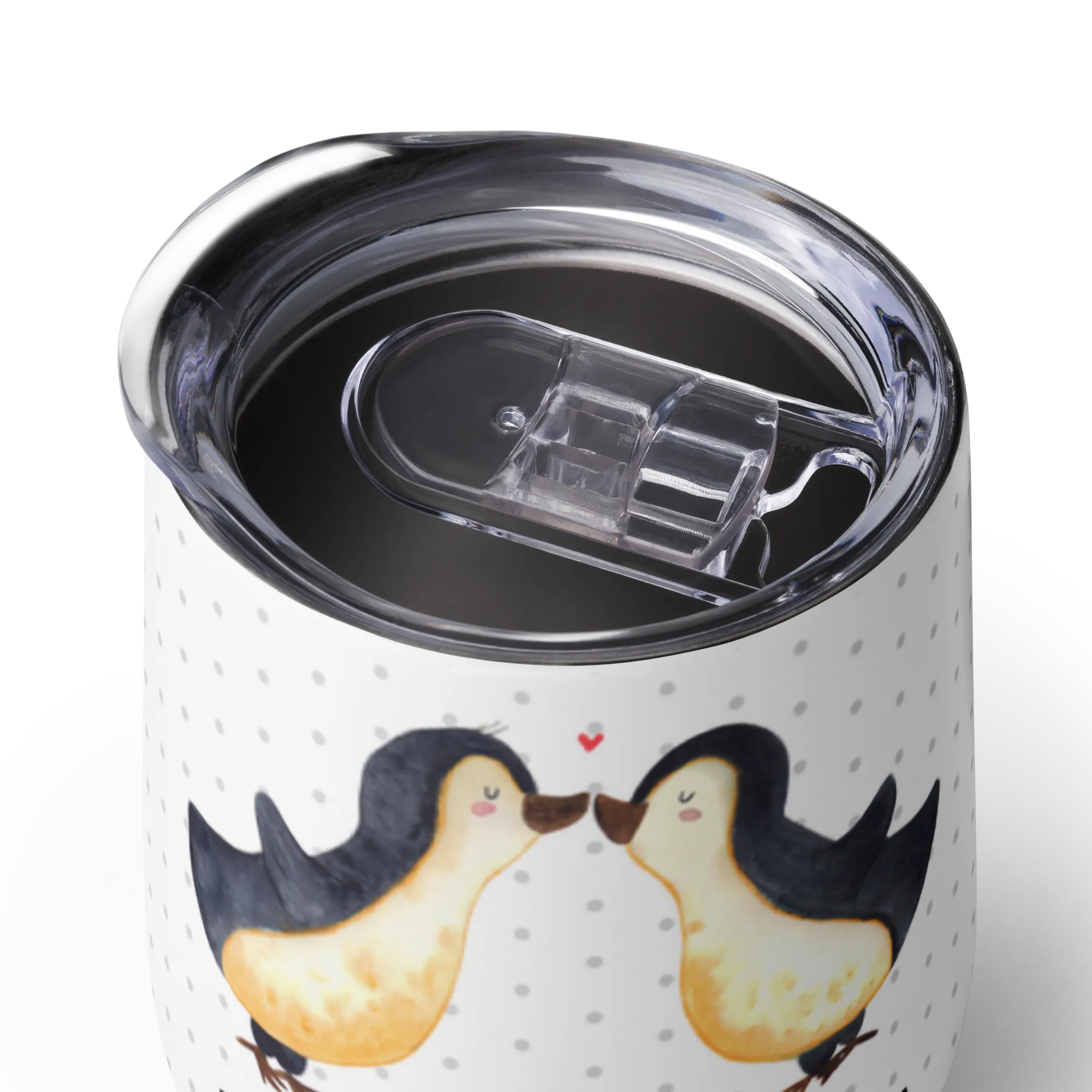 Entdecke den perfekten, personalisierten Weinbecher aus der liebevollen Kollektion von Mr. & Mrs. Panda – das ideale Geschenk für Deine Liebsten! Ob zum Valentinstag, Jahrestag oder einfach als kleines Mitbringsel, dieser Weinbecher mit dem niedlichen Motiv "Pinguine Kuss" bringt Herz und Freude in jeden Moment. Die zwei Pinguine in inniger Umarmung, umgeben von einem kleinen Herz, symbolisieren die Zärtlichkeit und Verbundenheit, die wir in der Liebe empfinden.