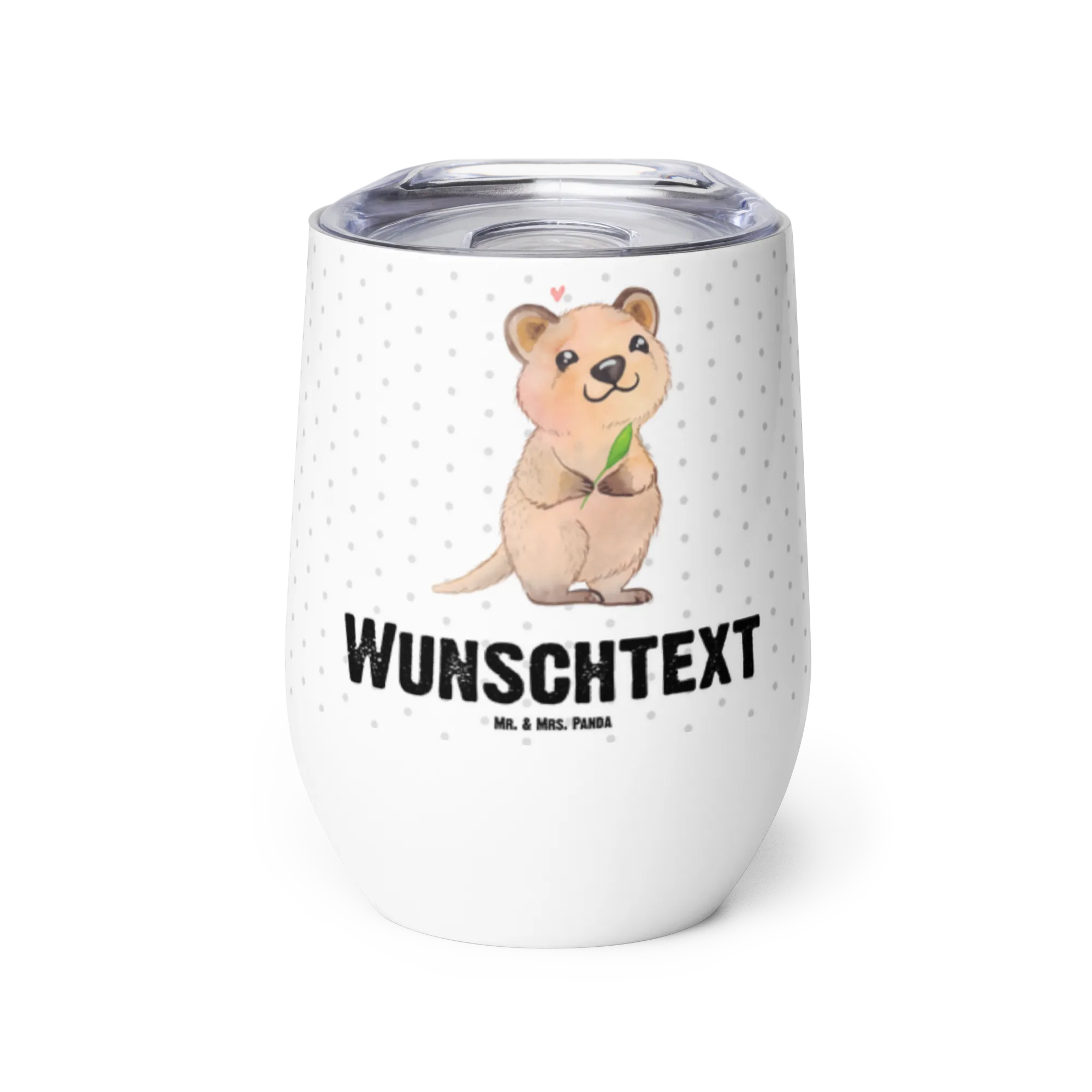Der Quokka Happy Weinbecher ist zudem pflegeleicht – einfach per Hand reinigen, um die Lebensdauer zu verlängern. Verschenke Freude, Stil und eine Portion gute Laune mit einem personalisierten Trinkbecher von Mr. & Mrs. Panda! Lass dir diese Gelegenheit nicht entgehen und hol dir dein Unikat!