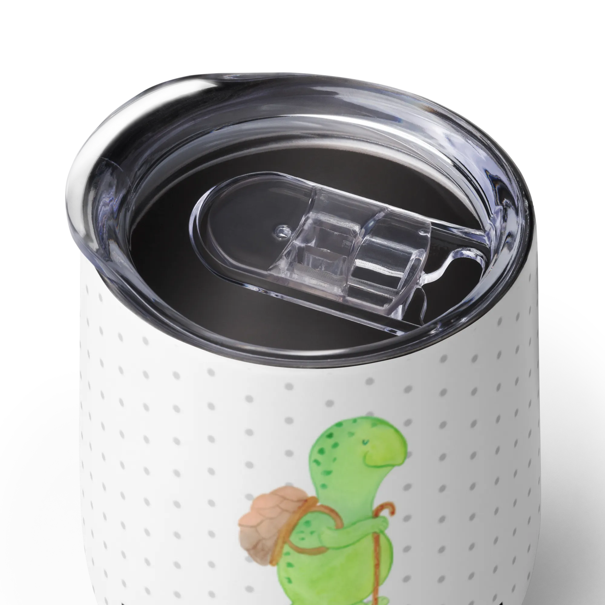 Du suchst nach dem perfekten Geschenk für einen Weinliebhaber oder einen lieben Menschen, der sich auf das nächste Abenteuer freut? Dann ist der personalisierte Weinbecher 'Schildkröte Wanderer' von Mr. & Mrs. Panda genau das Richtige für dich!