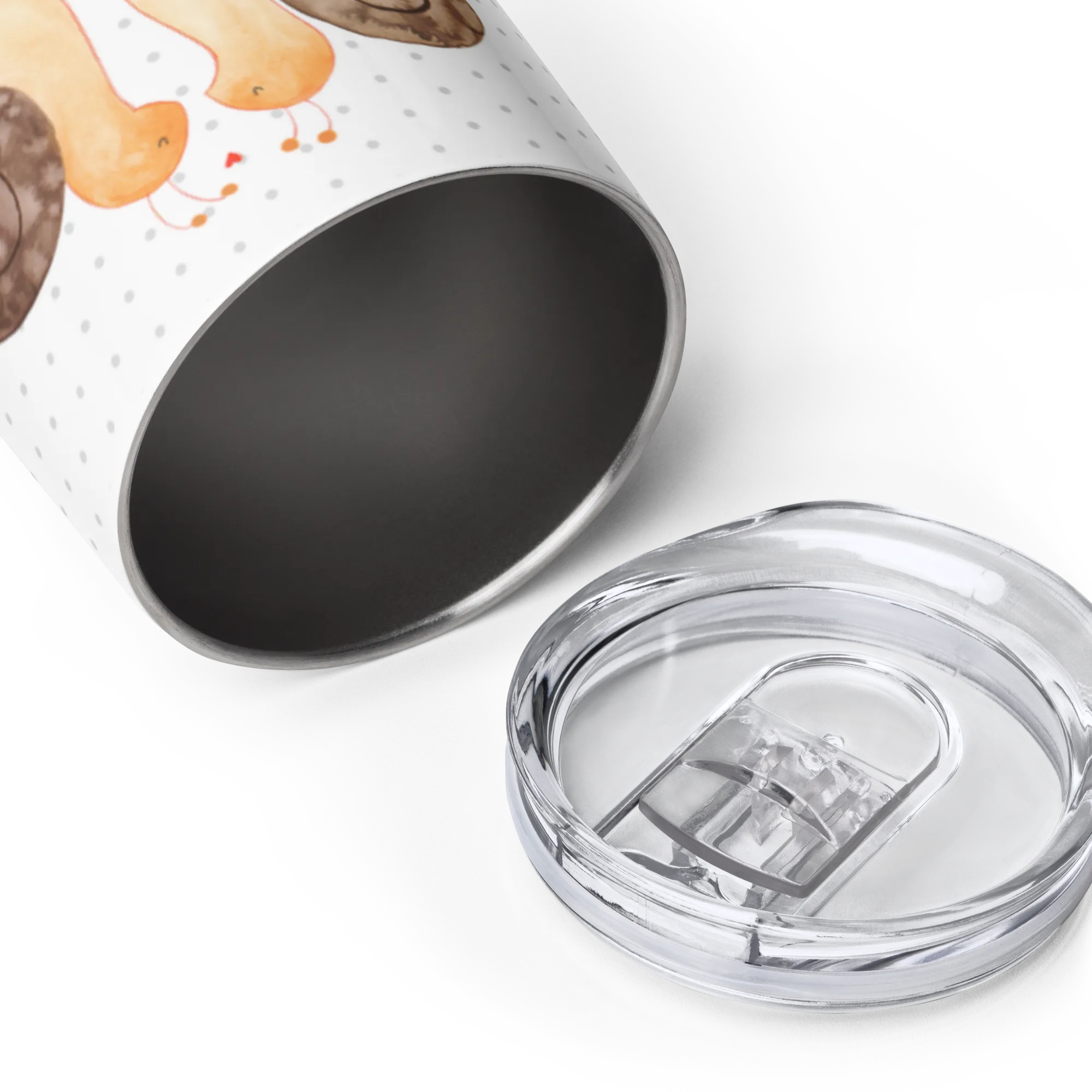 Verpasse deinem Wein einen ganz besonderen Flair mit dem personalisierten Weinbecher von Mr. & Mrs. Panda! Dieser hochwertige Becher fasst 375 ml und hat die ideale Höhe von 120 mm. Die doppelwandige Vakuumdichtung sorgt dafür, dass dein Getränk bis zu 5 Stunden lang in perfekter Temperatur bleibt. Ob für einen gemütlichen Abend auf der Couch oder beim Feiern mit Freunden – dieser Weinbecher ist stets ein Blickfang. Die bezaubernden Designs und Sprüche von Mr. & Mrs. Panda machen ihn zu einem individuellen Geschenk, denn du kannst ihn mit deinem eigenen Text oder Namen personalisieren. Bitte beachte, dass der Becher nicht für die Spülmaschine oder Mikrowelle geeignet ist und nur von Hand gewaschen werden sollte!