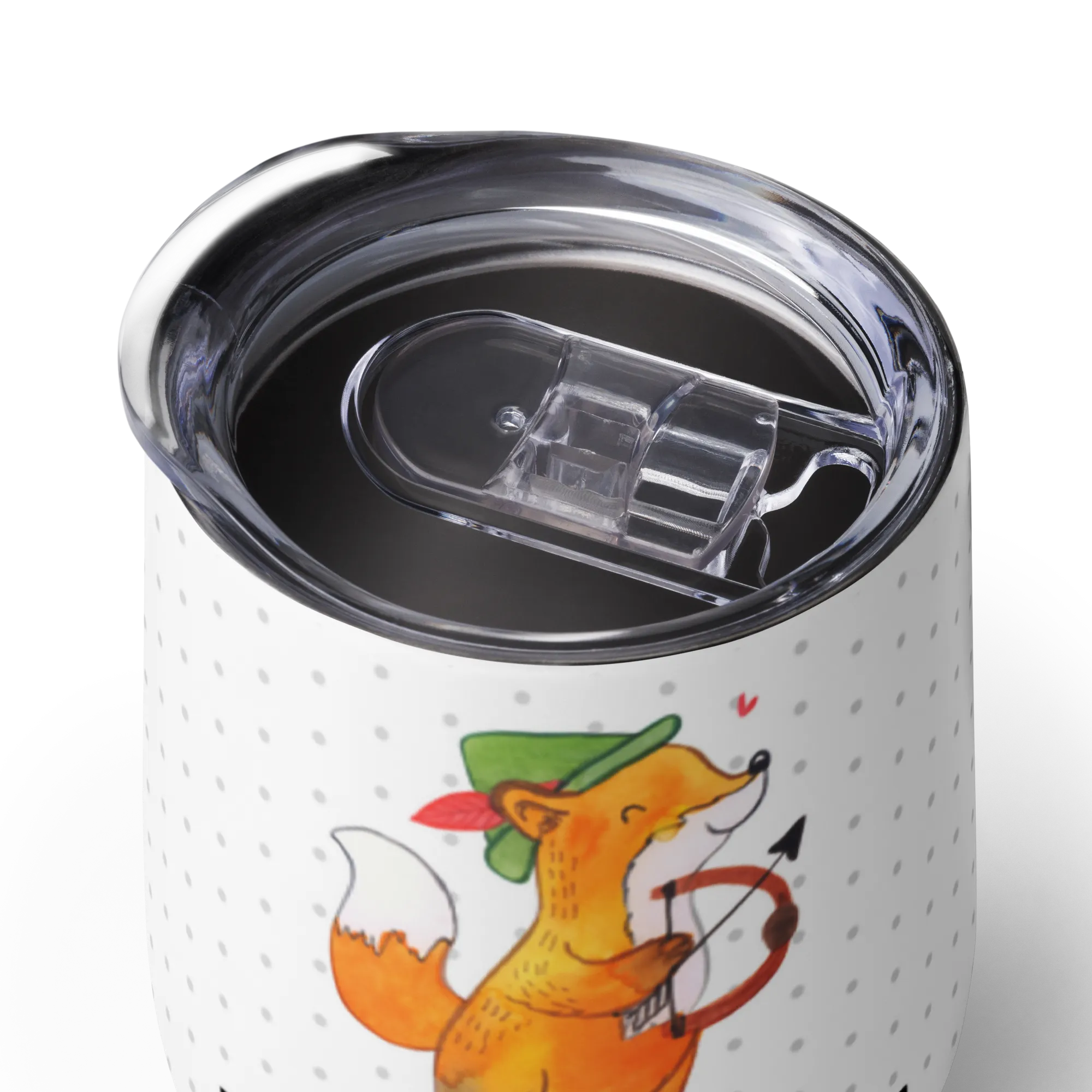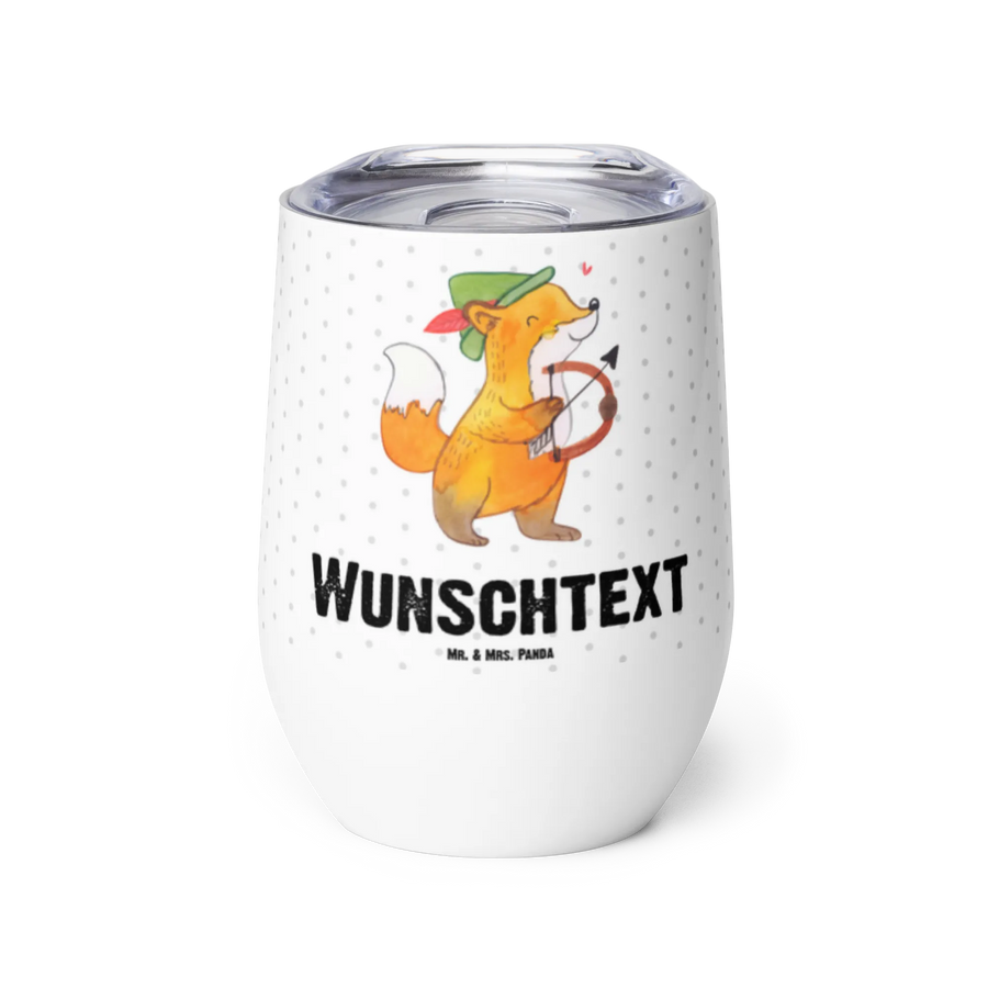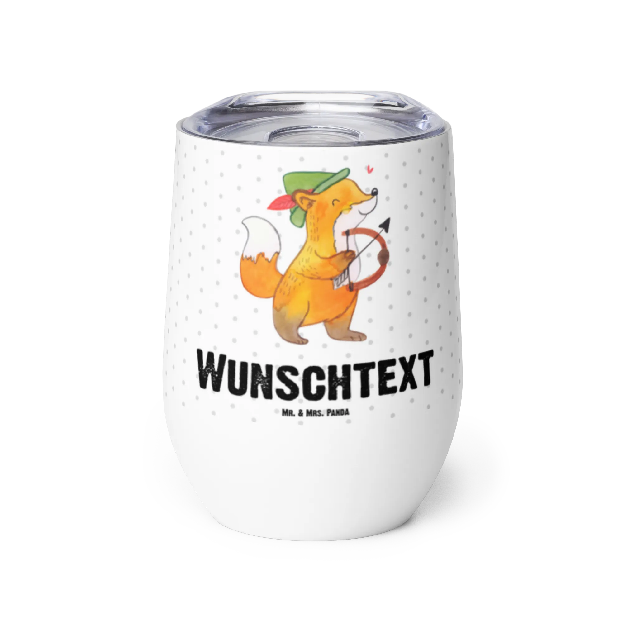Das besondere Motiv zeigt einen charmanten Fuchs im Schütze-Outfit, der mit Pfeil und Bogen perfekt zur Symbolik des lebensfrohen und energiegeladenen Sternzeichens passt. Mit dem Spruch "Schützen sind wie bunte Feuerwerke - immer voller Energie und bereit, die Welt zum Leuchten zu bringen." wird der Weinbecher zu einem echten Hingucker, der jedem Beschenkten ein Lächeln entlockt. Du kannst den Becher zudem mit einem Namen oder einem individuellen Wunschtext personalisieren, damit es ein ganz persönliches Geschenk wird.