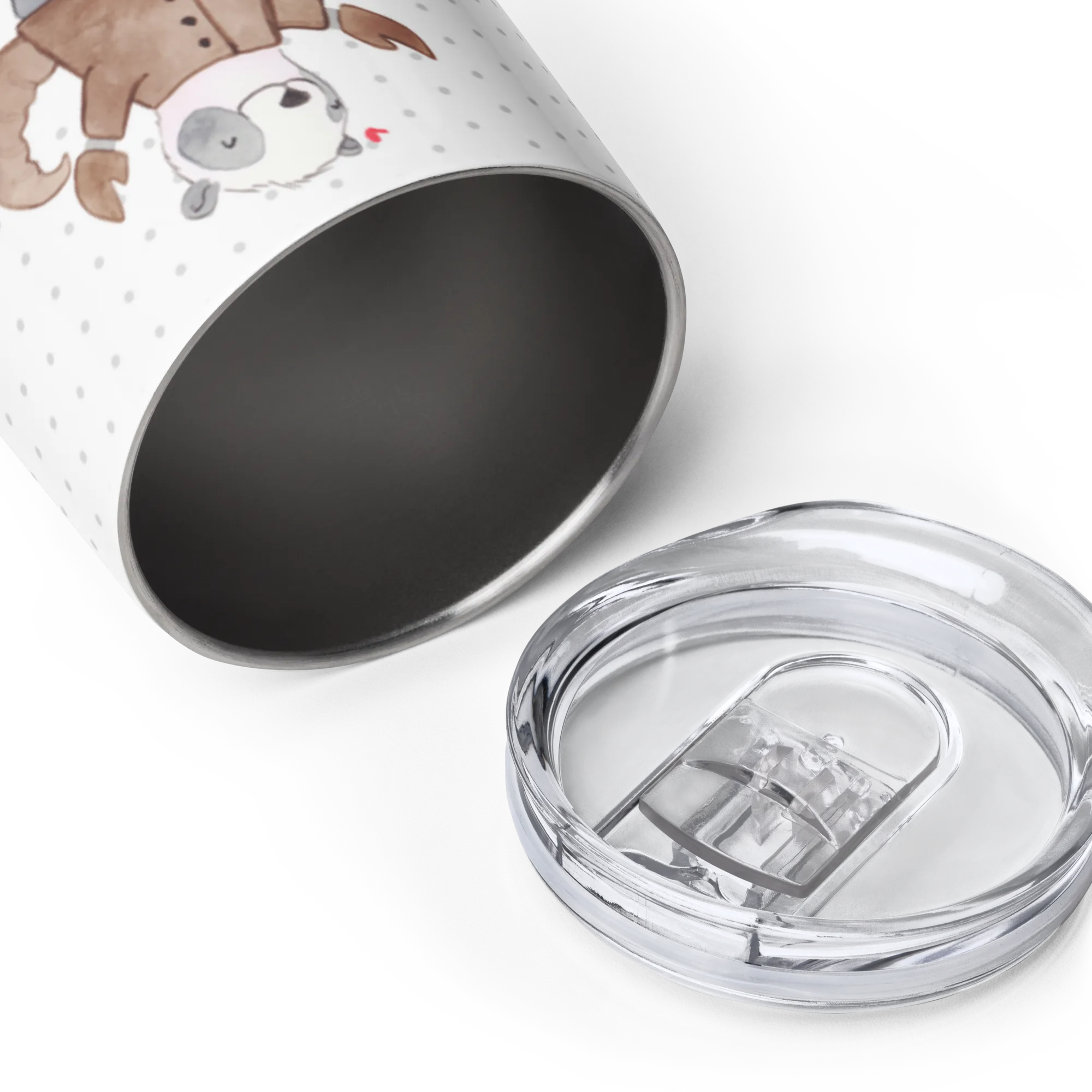 Verpasse deinem Wein einen ganz besonderen Flair mit dem personalisierten Weinbecher von Mr. & Mrs. Panda! Dieser hochwertige Becher fasst 375 ml und hat die ideale Höhe von 120 mm. Die doppelwandige Vakuumdichtung sorgt dafür, dass dein Getränk bis zu 5 Stunden lang in perfekter Temperatur bleibt. Ob für einen gemütlichen Abend auf der Couch oder beim Feiern mit Freunden – dieser Weinbecher ist stets ein Blickfang. Die bezaubernden Designs und Sprüche von Mr. & Mrs. Panda machen ihn zu einem individuellen Geschenk, denn du kannst ihn mit deinem eigenen Text oder Namen personalisieren. Bitte beachte, dass der Becher nicht für die Spülmaschine oder Mikrowelle geeignet ist und nur von Hand gewaschen werden sollte!