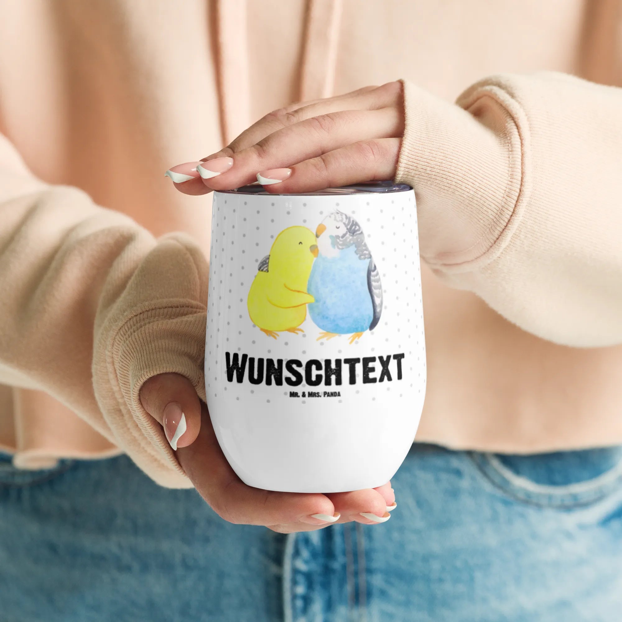 Personalisierter Weinbecher Wellensittich Liebe – Mr. & Mrs. Panda