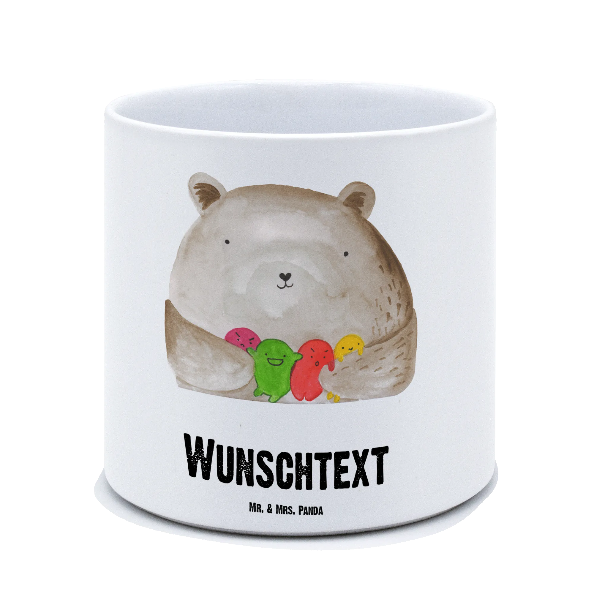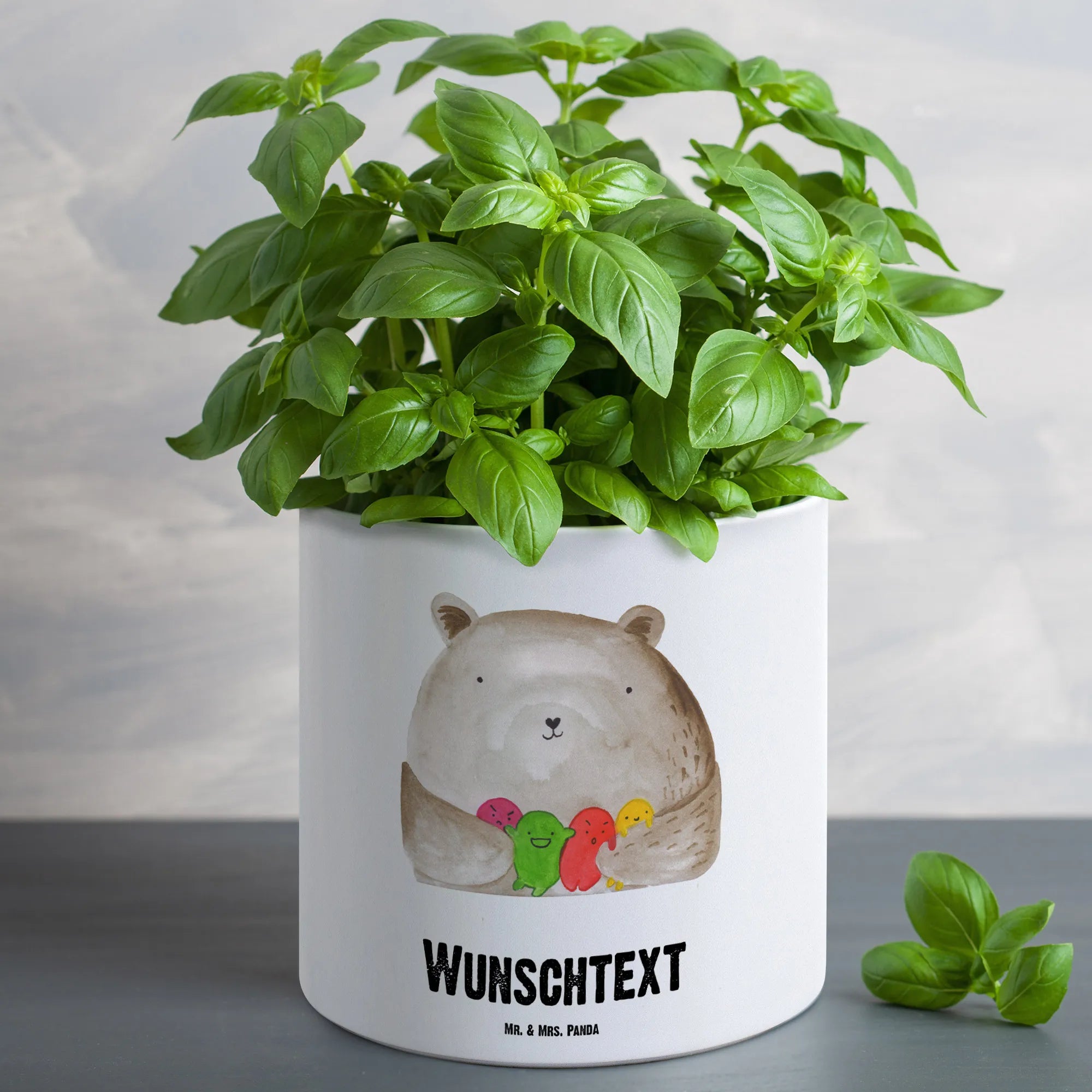 Die Bär Kollektion von Mr. & Mrs. Panda steht für handgezeichnete Aquarellmotive voller Gefühl. Der Blumentopf groß mit Gravur ist ideal für Kräuter, dekorative Pflanzen oder als großes Dekostück. Personalisiere deinen Übertopf XL mit Wunschtext und mache daraus ein persönliches Andenken, das lange Freude bereitet.