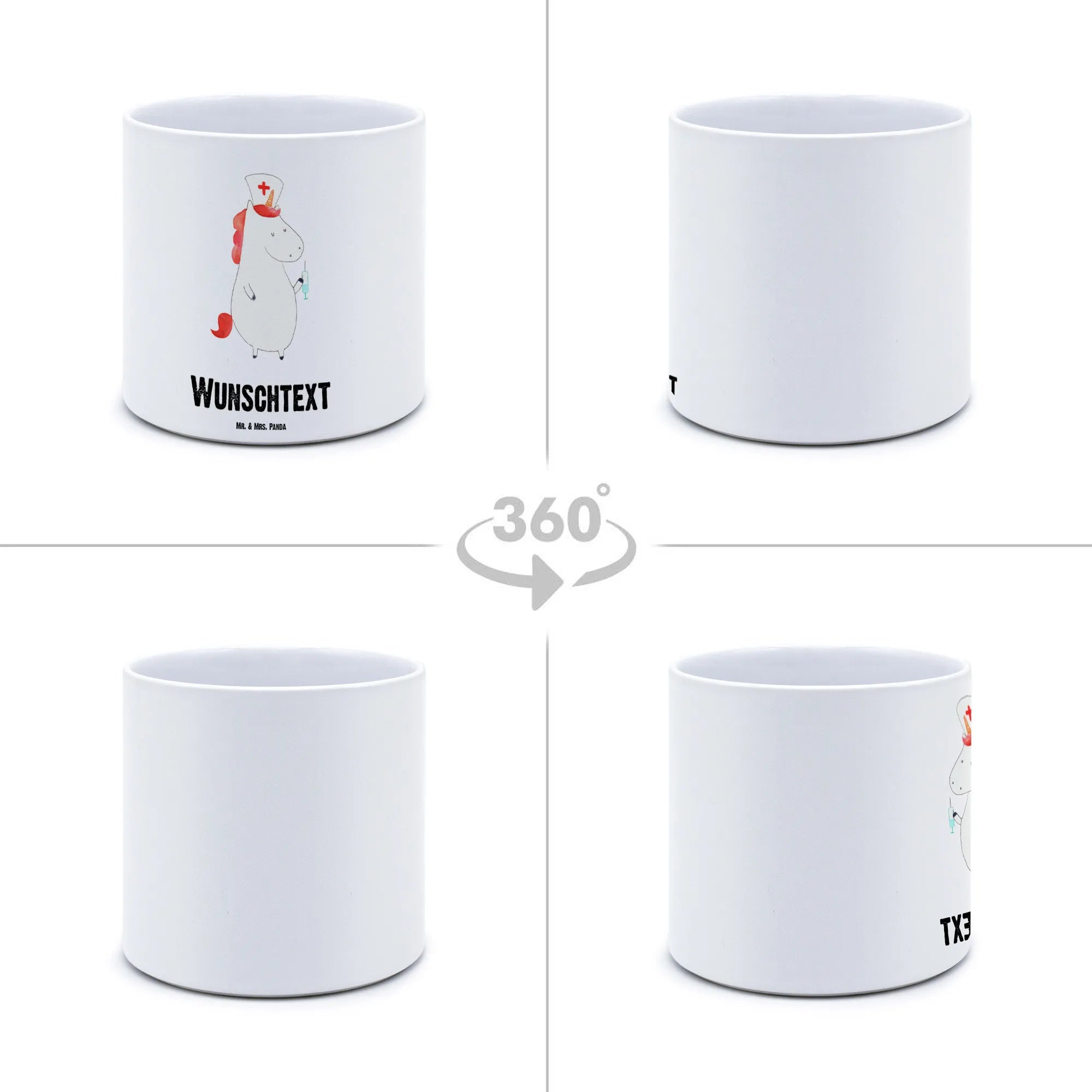 Personalisierter XL Blumentopf Einhorn Krankenschwester