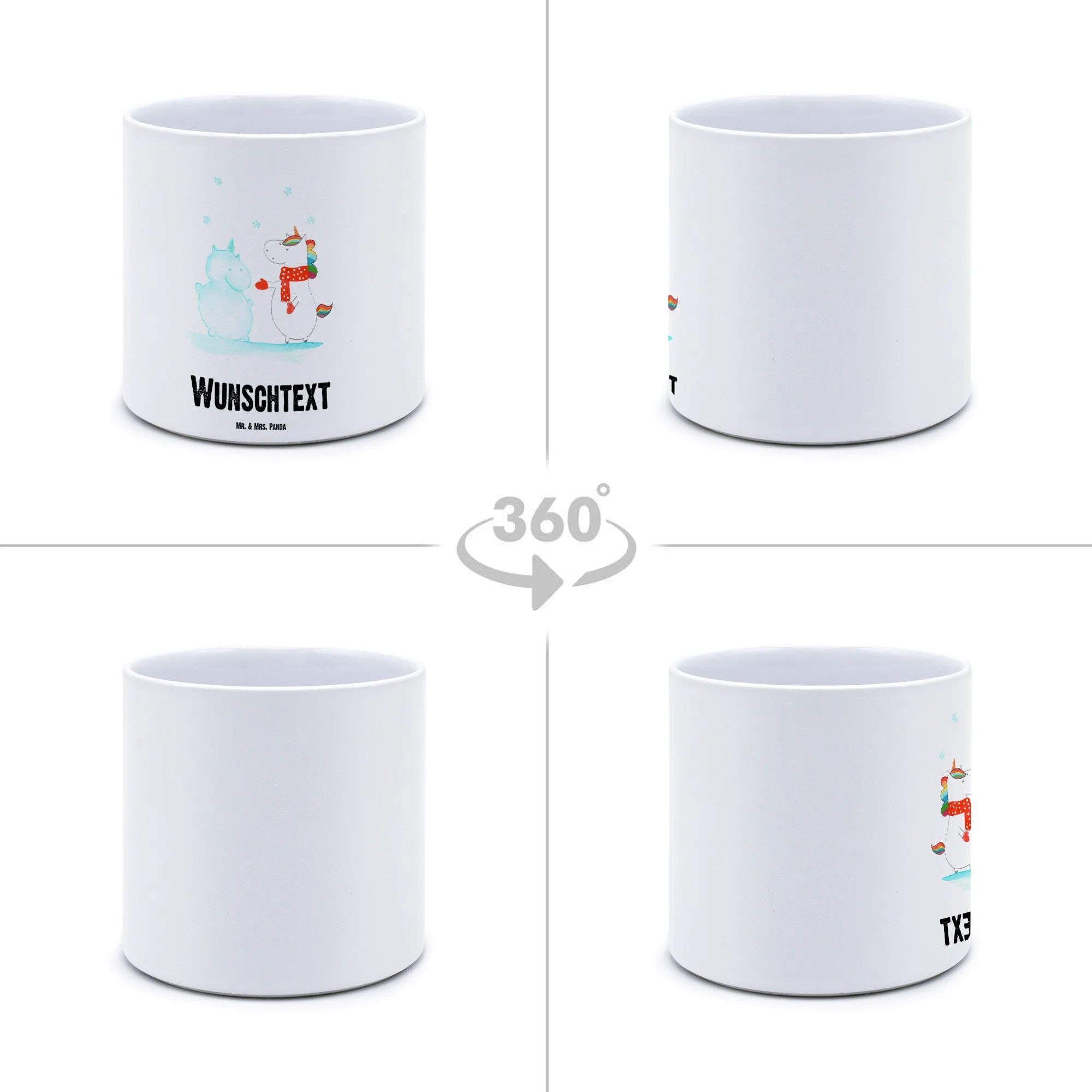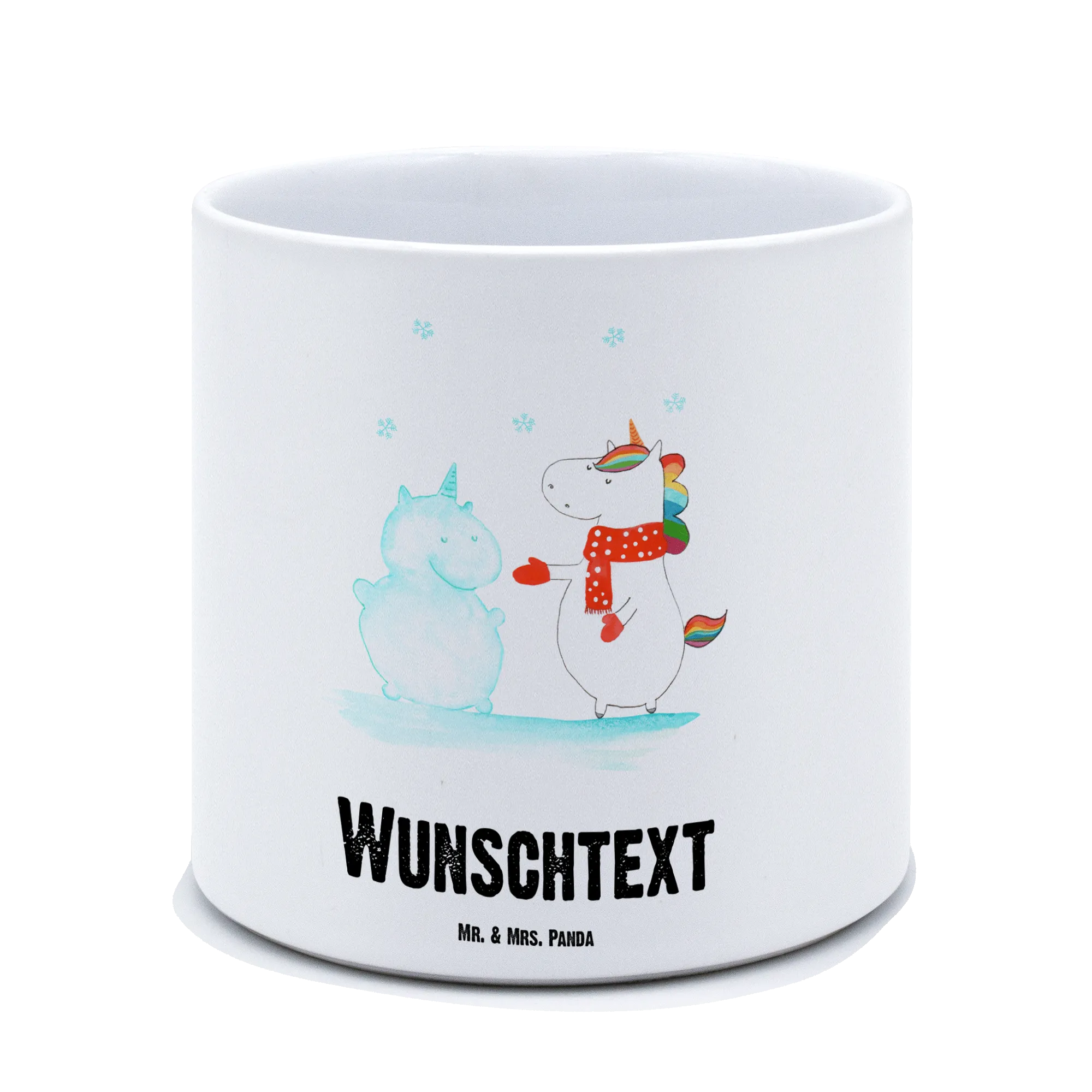 Der personalisierte XL Blumentopf Einhorn Schneemann von Mr. & Mrs. Panda ist das perfekte Geschenk für alle, die Einhörner und die zauberhafte Winterzeit lieben.