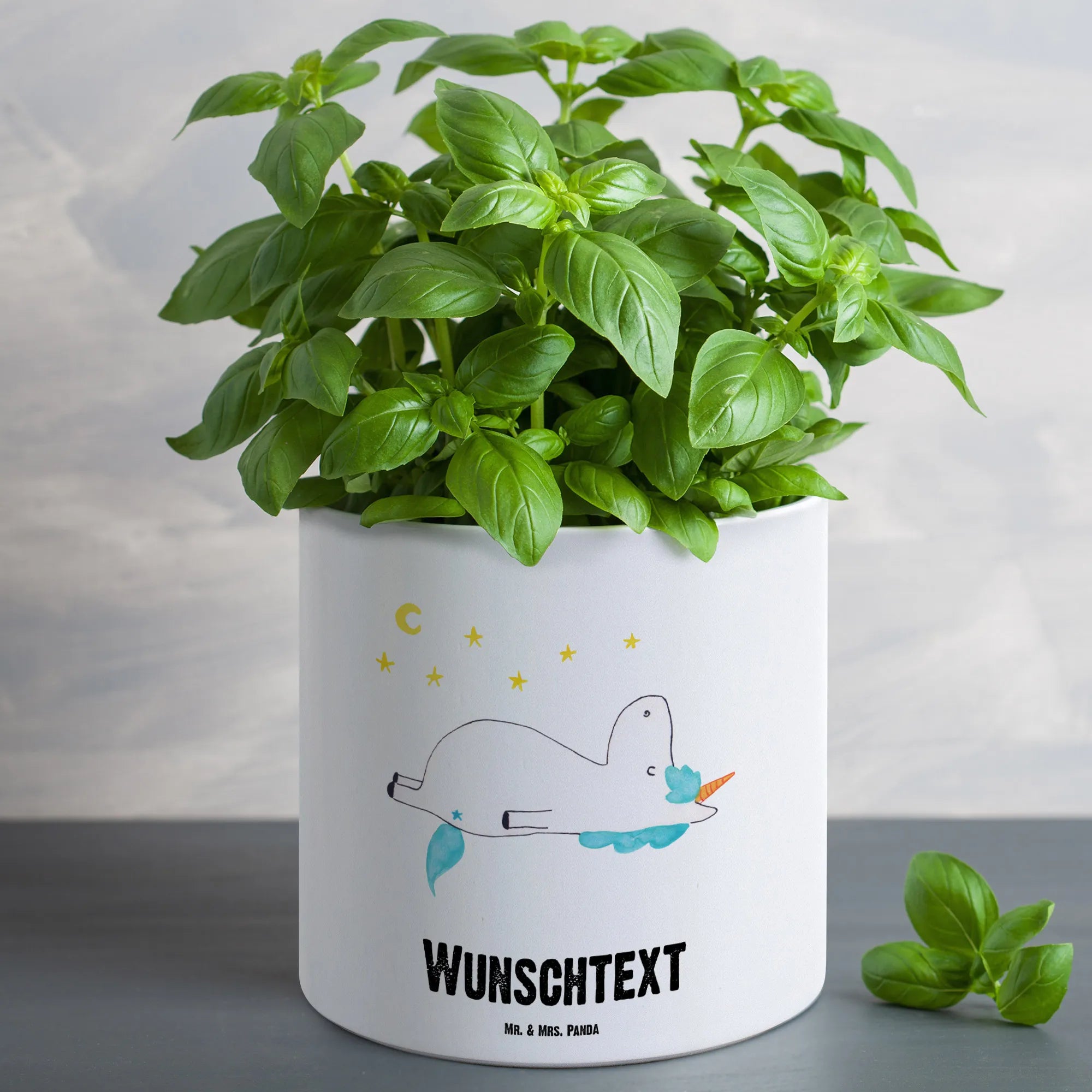 Pflegeleichte Eigenschaften, wie die Spülmaschinenfestigkeit, machen ihn zu einem idealen Begleiter für jeden Pflanzenliebhaber. Ob Geburtstagsgeschenk, Einweihungsgeschenk oder einfach nur so – dieser personalisierte Übertopf ist das perfekte prägnante Geschenk für Einhorn-Fans jeden Alters.