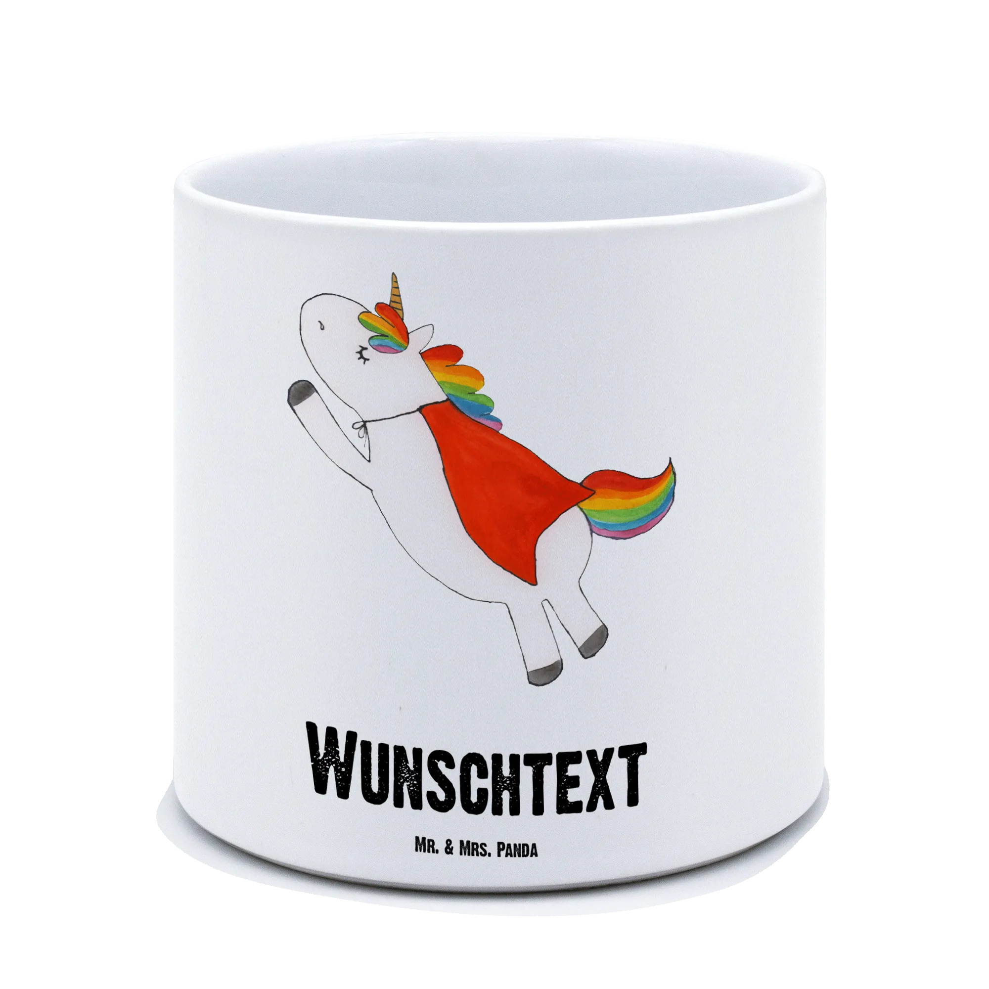 Personalisierter XL Blumentopf „Einhorn Super“ – ein zauberhafter Übertopf aus der Einhorn - Kollektion von Mr. & Mrs. Panda, perfekt für alle Einhorn-Fans und Schenker mit Herz. Das niedliche Super-Einhorn trägt den Spruch „Every girl needs a superhero” und kann mit deinem Wunschnamen oder Wunschtext personalisiert werden. 🎁