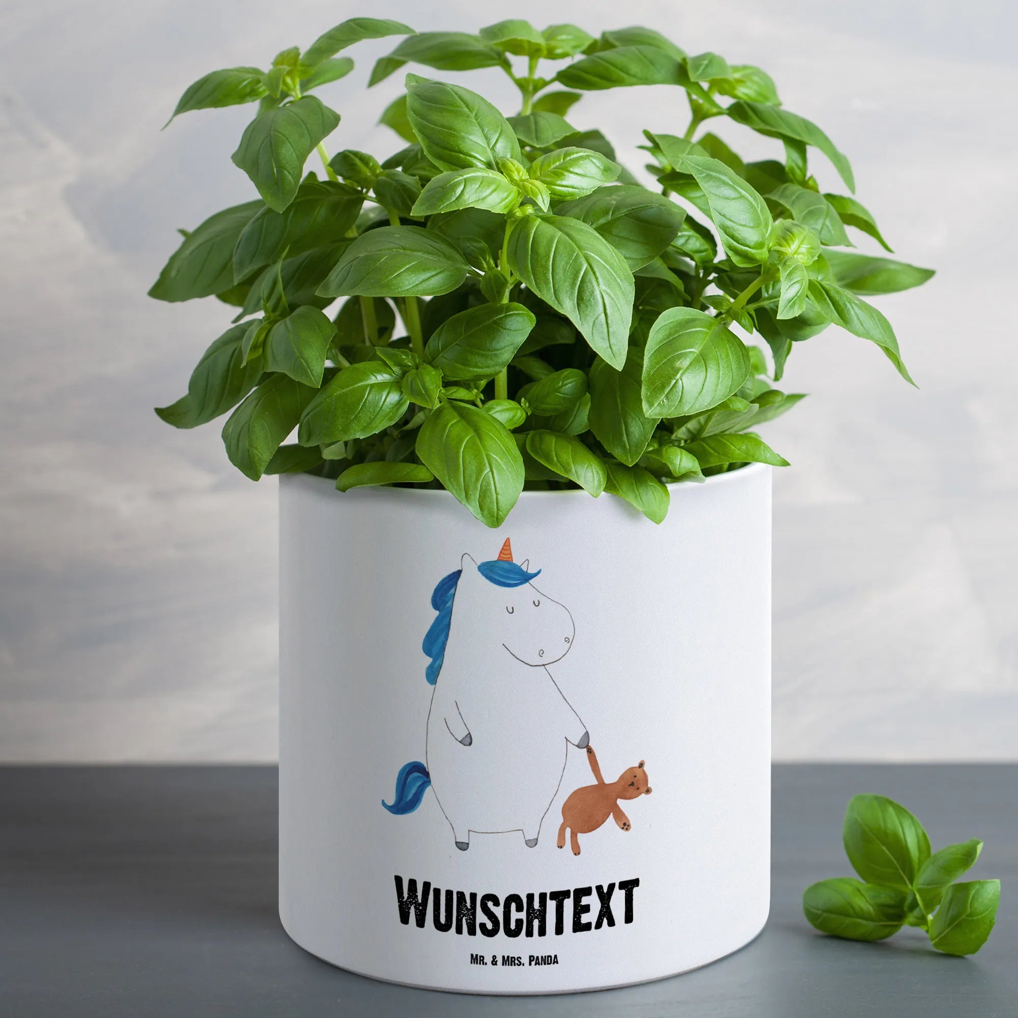 Der personalisierte XL Blumentopf Einhorn Teddy aus der zauberhaften Einhorn-Kollektion von Mr. & Mrs. Panda ist die perfekte Kombination aus Funktionalität und Stil. Dieser bezaubernde Blumentopf ist nicht nur ein wunderschönes Deko-Element, sondern auch ein praktisches Accessoire für dein Zuhause oder deinen Garten. Mit einem Durchmesser von 142 mm und einer Höhe von 135 mm bietet er ausreichend Platz für deine liebsten Kräuter oder Pflanzen. Der