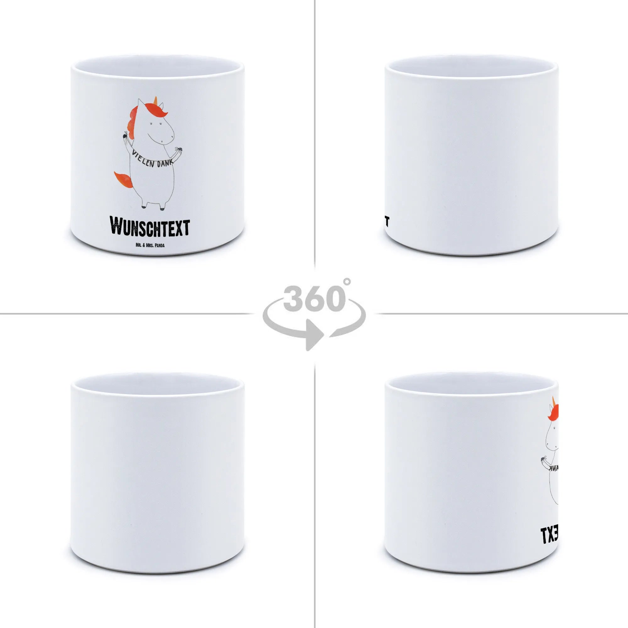 Das besondere an diesem Blumentopf ist, dass du ihn personalisieren kannst! Ob mit deinem Namen, einem wundervollen Spruch oder einfach nur einem "Danke" – mit diesem persönlichen Touch machst du das Geschenk einzigartig. Das Motiv des süßen Einhorns, welches mit Freude und einem Dankes-Geländer in der Hand strahlt, wurde von Mrs. Panda handgezeichnet und bringt ein Lächeln auf jedes Gesicht.