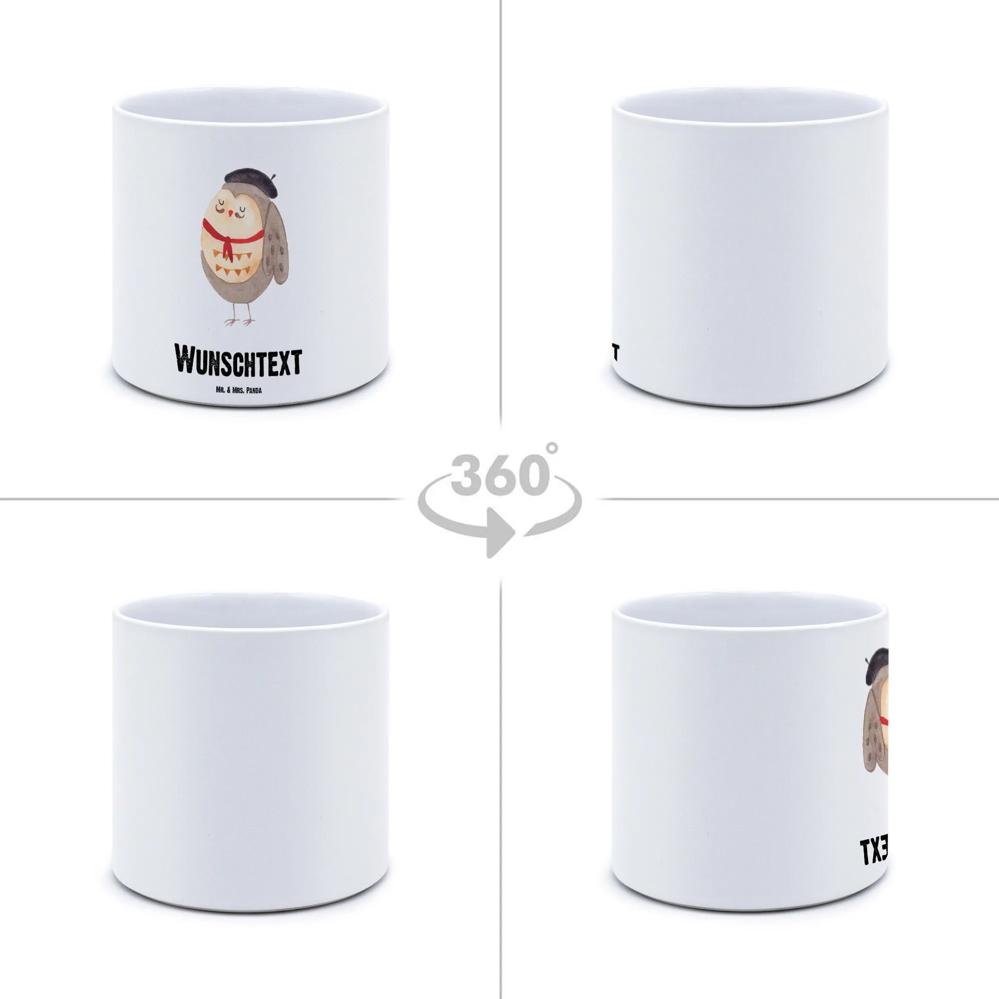Der personalisierte XL Blumentopf mit dem niedlichen Motiv der französischen Eule von Mr. & Mrs. Panda ist das perfekte Geschenk für alle, die Eulen lieben! Er strahlt nicht nur Charm und Stil aus, sondern bietet dir auch eine einzigartige Möglichkeit, dein Zuhause oder Büro aufzupeppen. Mit den Maßen von 135 mm x 142 mm und einem Durchmesser von 142 mm hat dieser Blumentopf genau die richtige Größe, um deine Lieblingskräuter oder andere Pflanzen in Szene zu setzen. Egal, ob du ihn auf deiner Fensterbank, Terrasse oder im Garten platzierst, dieser Blumentopf sorgt überall für gute Laune.