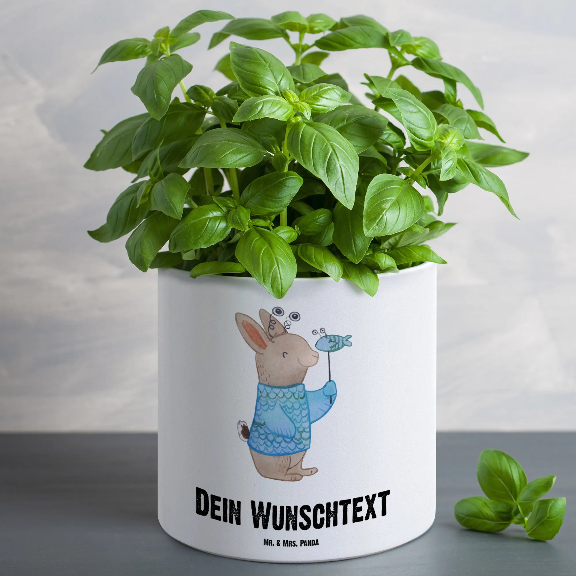 Ob für den eigenen Balkon, die Terrasse oder die Fensterbank - dieser Blumentopf findet überall seinen Platz. Schenke dir oder deinen Lieben etwas Einzigartiges! Das Motiv Fische Astrologie ist nicht nur wunderschön gestaltet, sondern unterstreicht auch ganz zauberhaft die charakterlichen Eigenschaften des Sternzeichens. Die Gestaltung mit dem süßen Kaninchen im Fischkostüm bringt ein Lächeln auf jedes Gesicht. Der Spruch Fische-Power: Tief wie der Ozean, frei wie der Fluss umrahmt die Botschaft und macht diesen Blumentopf zu einem echten Blickfänger. Der personalisierte Übertopf kann mit deinem Wunschnamen oder Wunschtext versehen werden, was ihn zu einem ganz besonderen Geschenk macht.