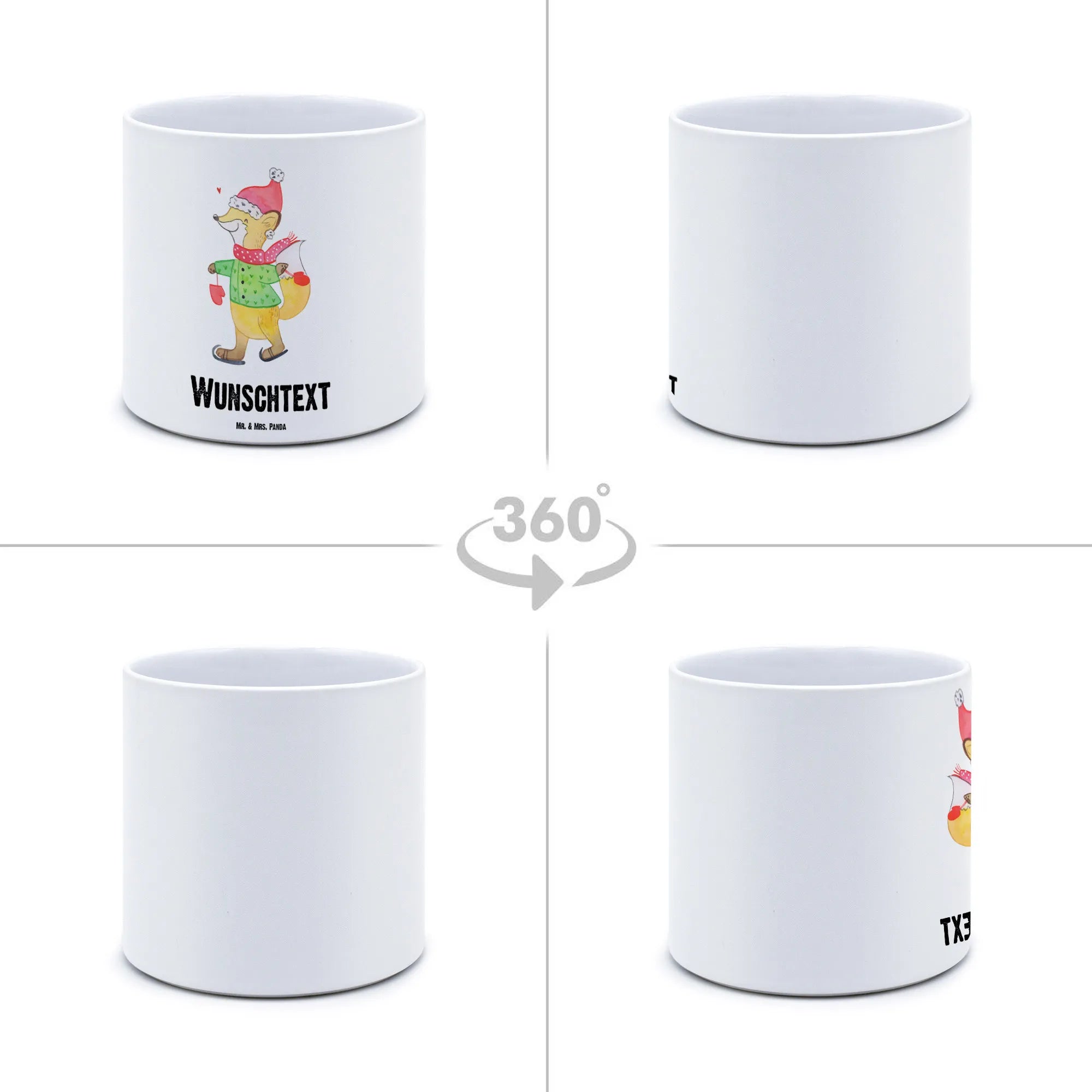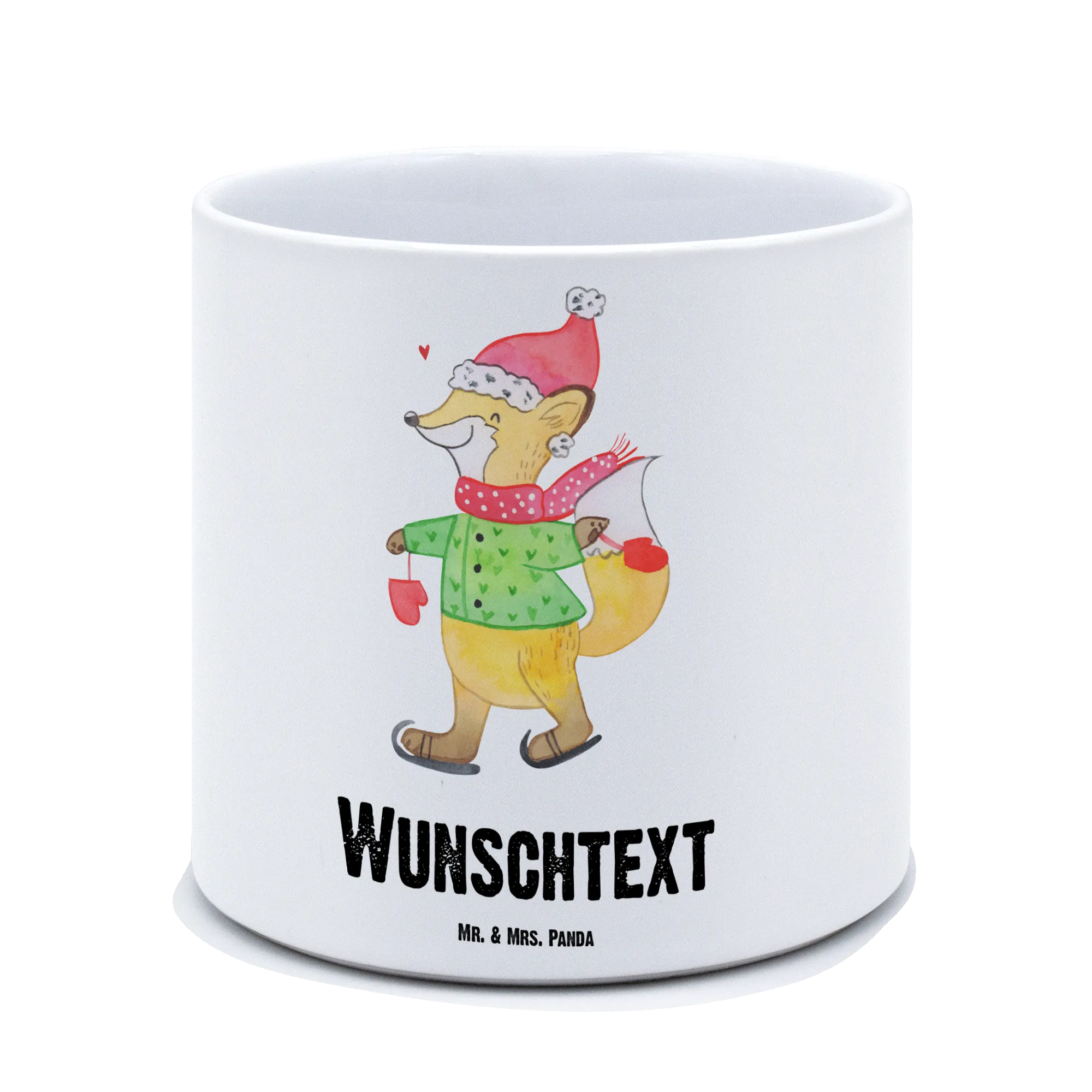 Der personalisierte XL Blumentopf "Fuchs Schlittschuhe" von Mr. & Mrs. Panda ist das perfekte Geschenk für alle, die den Winter und die Weihnachtszeit lieben! Mit einem fröhlich wirkenden Fuchs, der in seinen niedlichen Schlittschuhen über das Eis gleitet, bringt dieser Blumentopf eine zauberhafte Atmosphäre in jedes Zuhause.