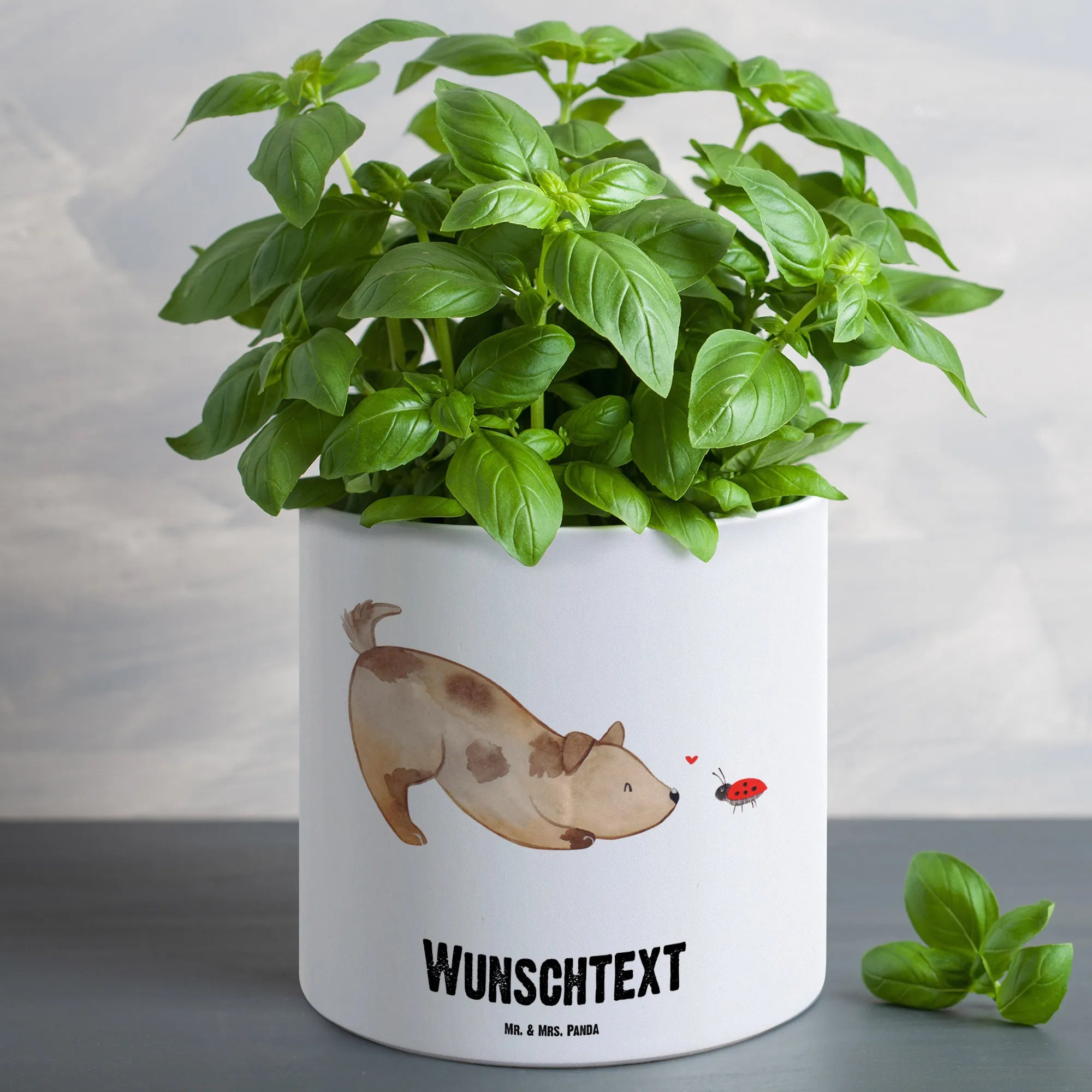 Personalisierter XL Blumentopf Hund Marienkäfer