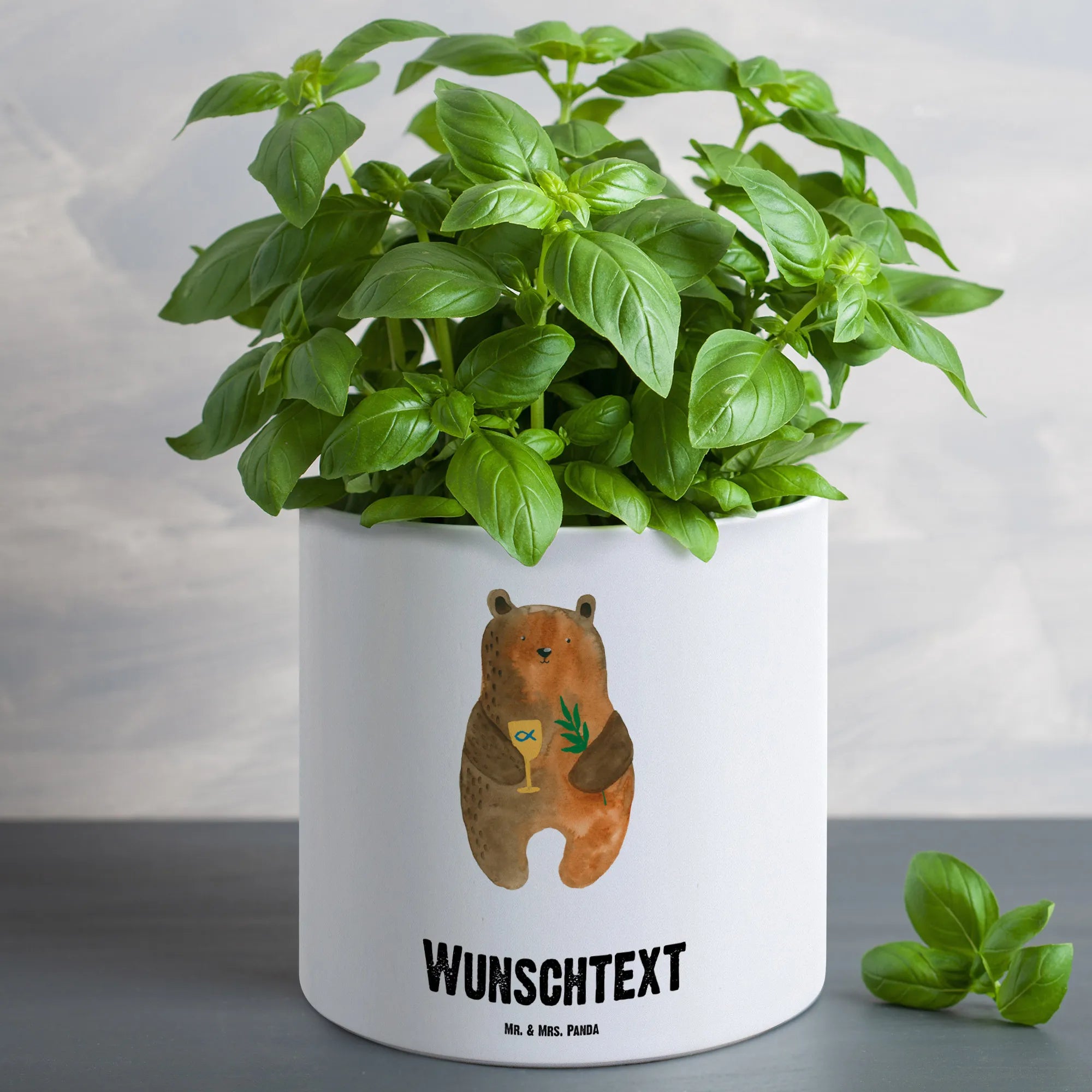 Der personalisierte XL Blumentopf "Konfirmation-Bär" von Mr. & Mrs. Panda ist das perfekte Geschenk zur Konfirmation! 🎉 Dieser liebevoll gestaltete Blumentopf in hochwertiger Keramik begeistert sowohl Kinder als auch Erwachsene. Mit seinem süßen Bär-Motiv, das einen Bären mit einem goldenen Kelch in der Hand und einem Zweig in der anderen zeigt, ist er ideal, um dem besonderen Tag eine persönliche Note zu verleihen.