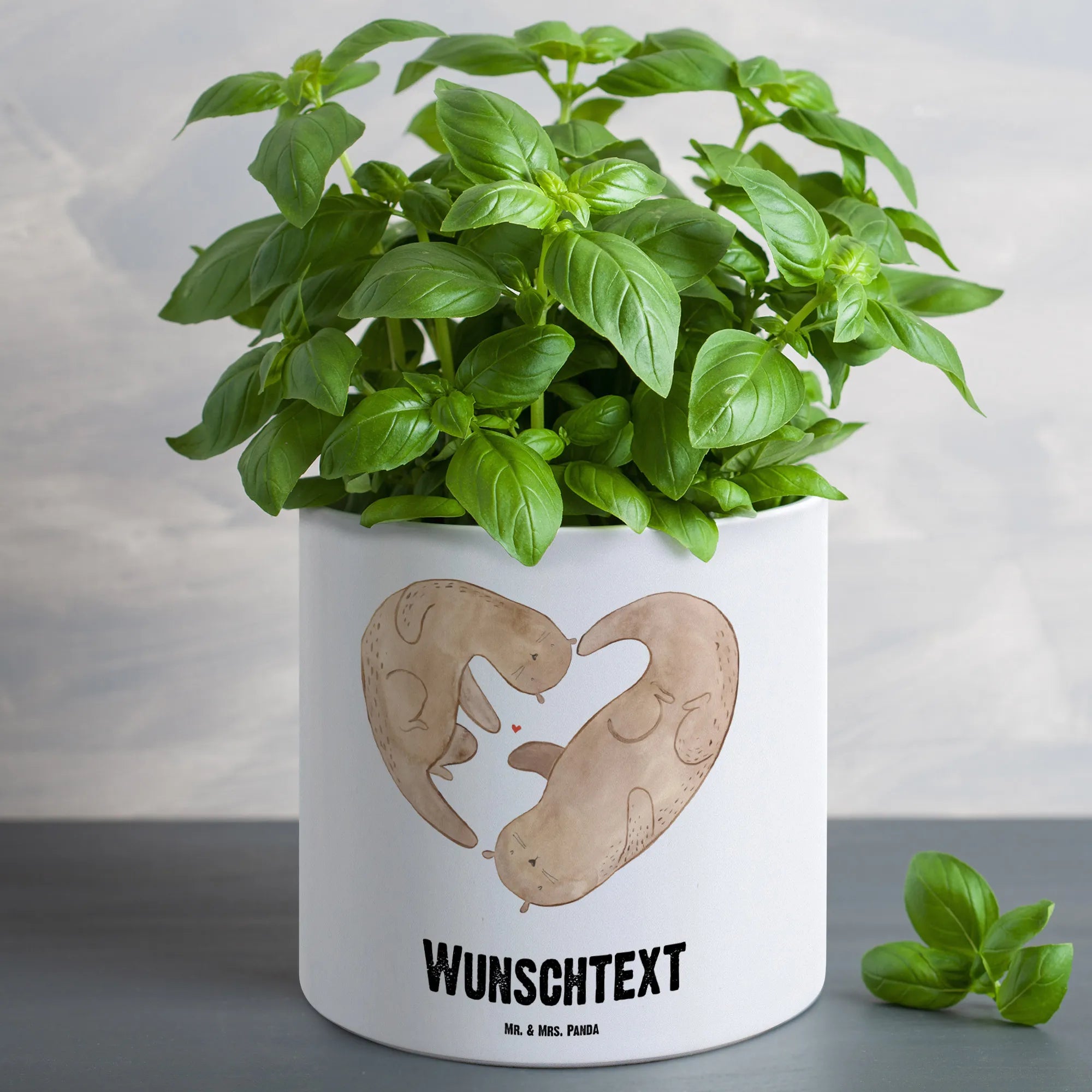 Stelle ihn auf die Fensterbank, die Terrasse oder in deinen Garten - in jedem Umfeld zieht er die Blicke auf sich. Ein personalisiierbarer Pflanztopf, der sowohl für otterliebende Menschen als auch für Pflanzenfreunde ein Highlight ist. Personalisiere ihn mit deinem Wunschtext und mach diesen Blumentopf zu einem Unikat!