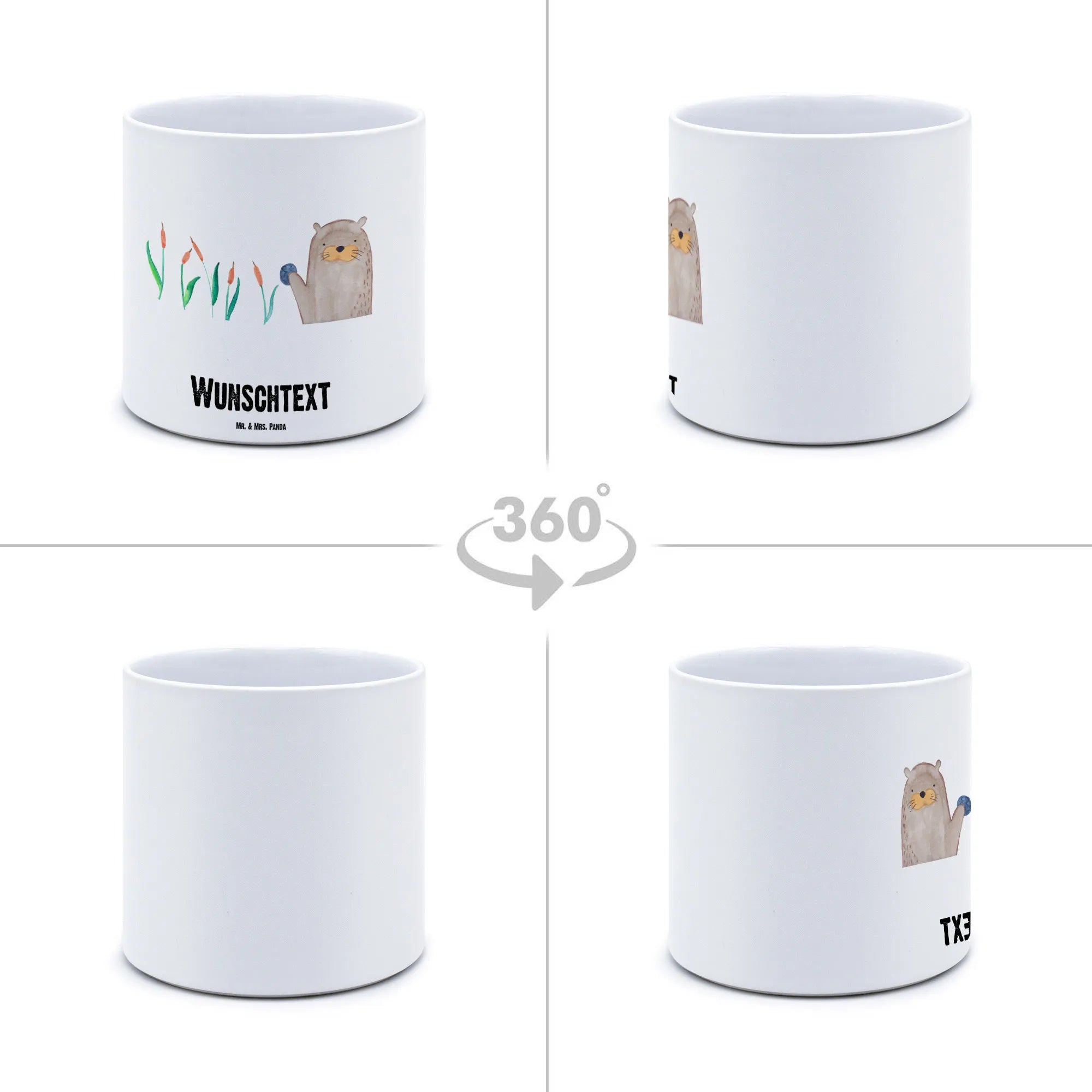 Wenn du auf der Suche nach dem perfekten Geschenk für einen Pflanzenliebhaber bist, dann ist der personalisierte XL Blumentopf "Otter mit Stein" aus der Otter-Kollektion von Mr. & Mrs. Panda genau das Richtige für dich! Dieser niedliche und einzigartige Blumentopf bringt nicht nur Freude, sondern erinnert auch daran, an seinen Zielen festzuhalten. Der liebevoll gestaltete Otter hält seinen Lieblingskieselstein hoch und vermittelt eine Botschaft, die einfach zum Schmunzeln anregt. Die Kombination aus verspieltem Design und dem humorvollen Spruch "Wenn du dich mal schlecht fühlst, denk daran: Seeotter haben eine kleine Tasche in ihrer Haut, in der sie ihren Lieblingskieselstein aufbewahren" sorgt dafür, dass jeder, der dieses Geschenk erhält, sich sofort besser fühlt!