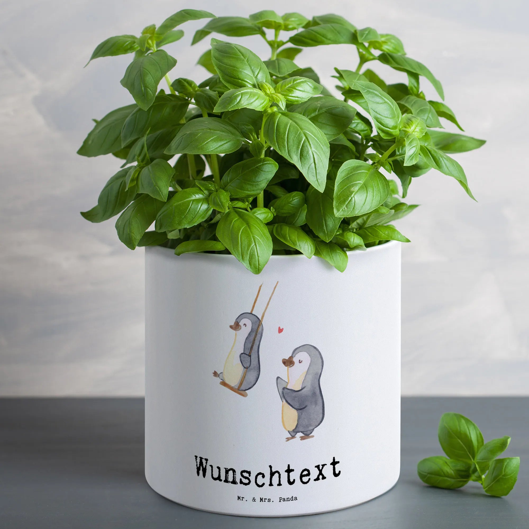Schaffe eine individuelle Atmosphäre in deinem Zuhause mit unserem personalisierten XL Blumentopf von Mr. & Mrs. Panda! Dieser zauberhafte Topf wird mit deinem Wunschnamen und Text bedruckt und wird so zum persönlichen Highlight in deinem Raum. Mit einer Höhe von 135 mm und einen Durchmesser von 142 mm ist er ideal für größere Pflanzen oder Kräuter. Aus hochwertiger glänzender Keramik gefertigt und mit einem Gewicht von 1110 g, passt dieser Blumentopf perfekt zu jedem Wohnstil. Ob für den Balkon, die Terrasse oder die Fensterbank, er zieht alle Blicke auf sich. Praktische Merkmale wie das Entwässerungsloch machen ihn außerdem äußerst benutzerfreundlich. Zudem ist er spülmaschinenfest, was die Pflege zum Kinderspiel macht. Verleihe deinem Zuhause mit unserem personalisierten XL Blumentopf einen einzigartigen Charme!