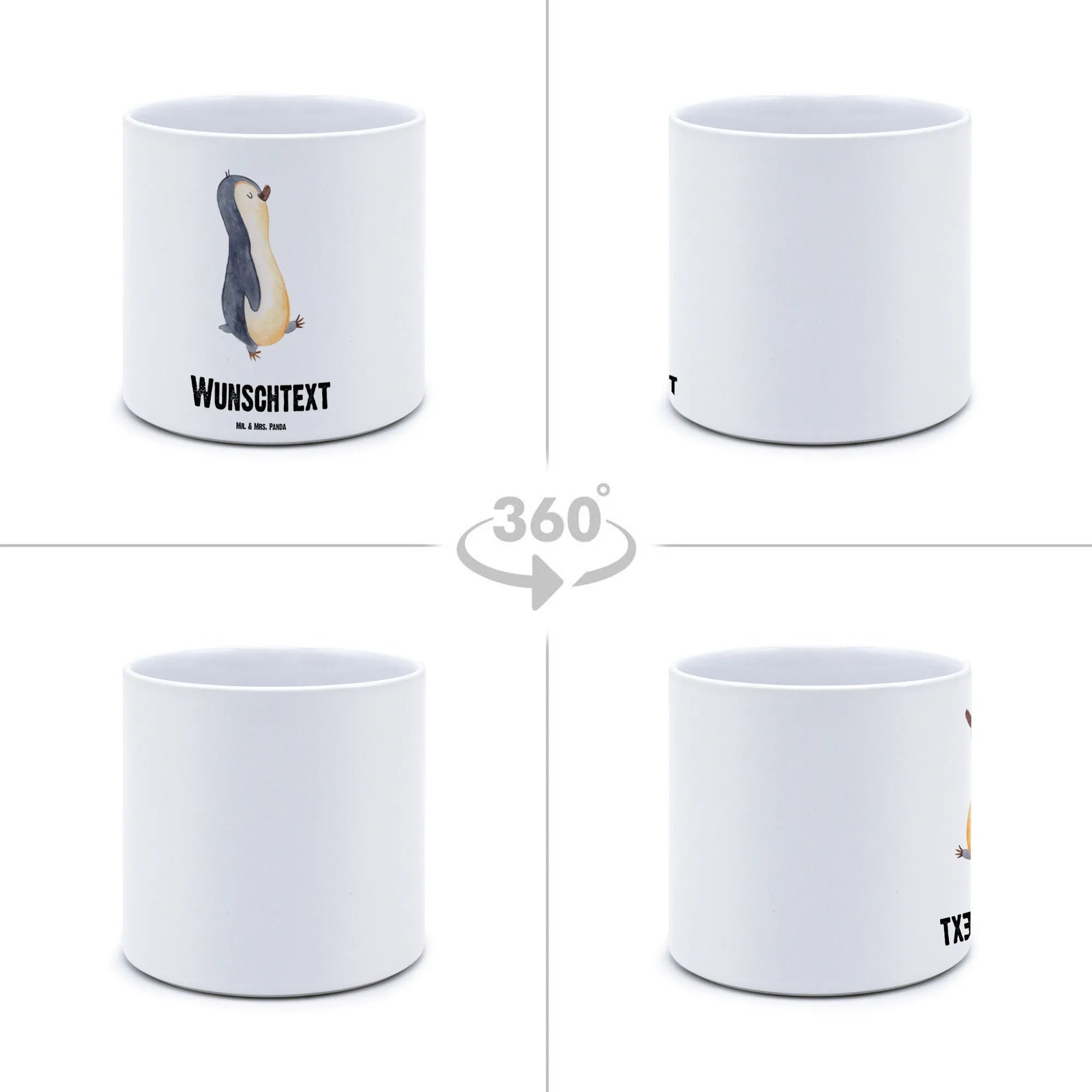 Personalisierter XL Blumentopf Pinguin marschierend – Mr. & Mrs. Panda