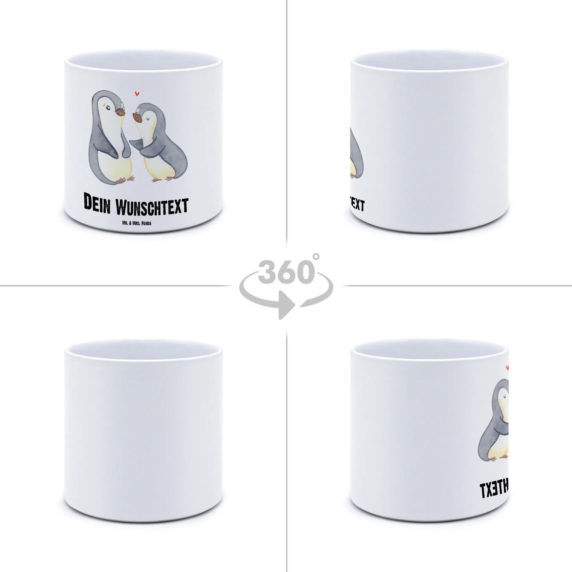 Der personalisierte XL Blumentopf "Pinguine trösten" aus der Kollektion Liebe von Mr. & Mrs. Panda ist das perfekte Geschenk für jeden Anlass, der Liebe und Zuneigung feiern möchte. Ob zum Valentinstag, Hochzeitstag oder als liebevolles Mitbringsel für deine Freundin oder deinen Ehemann – dieser einzigartige Keramiktopf wird Herzen höherschlagen lassen!