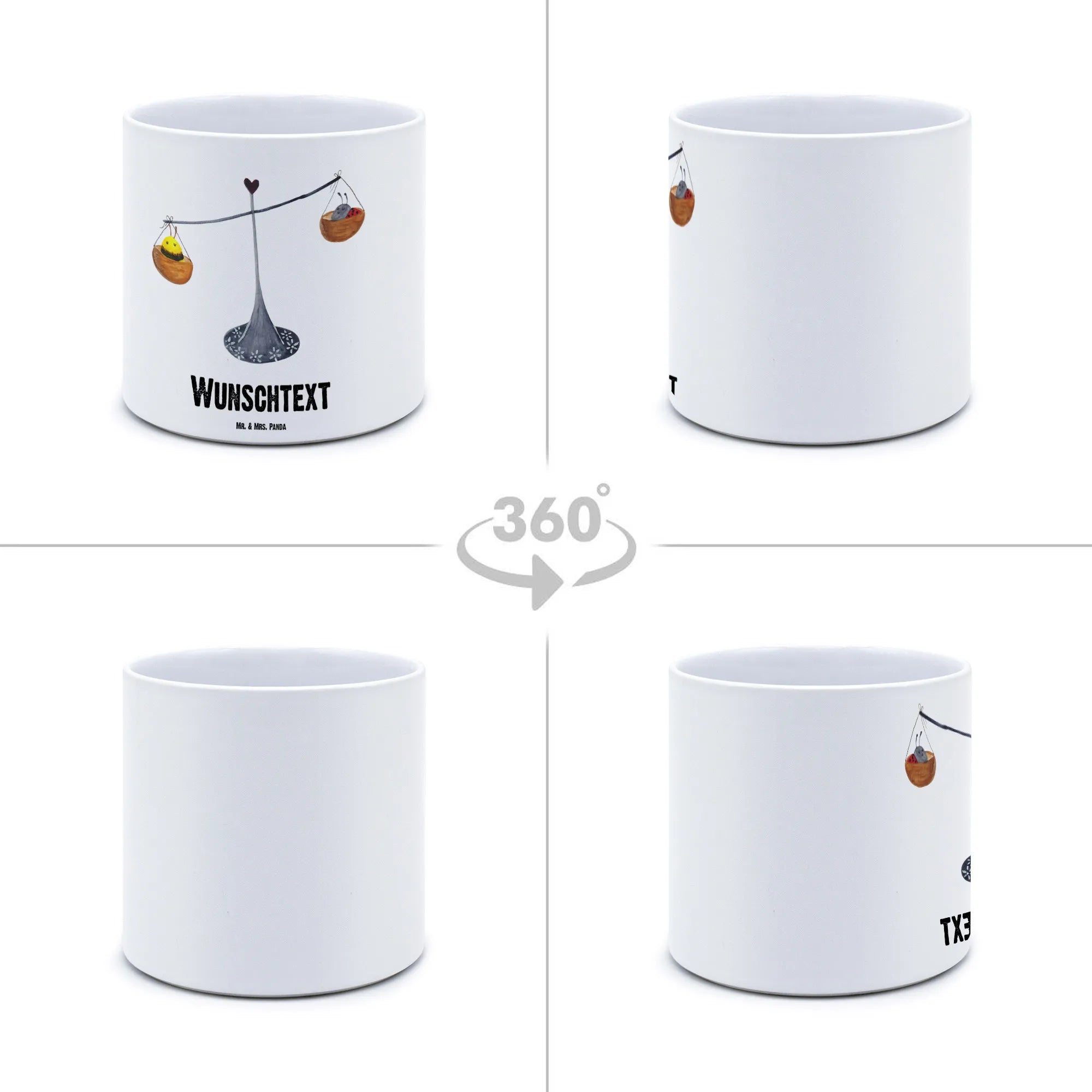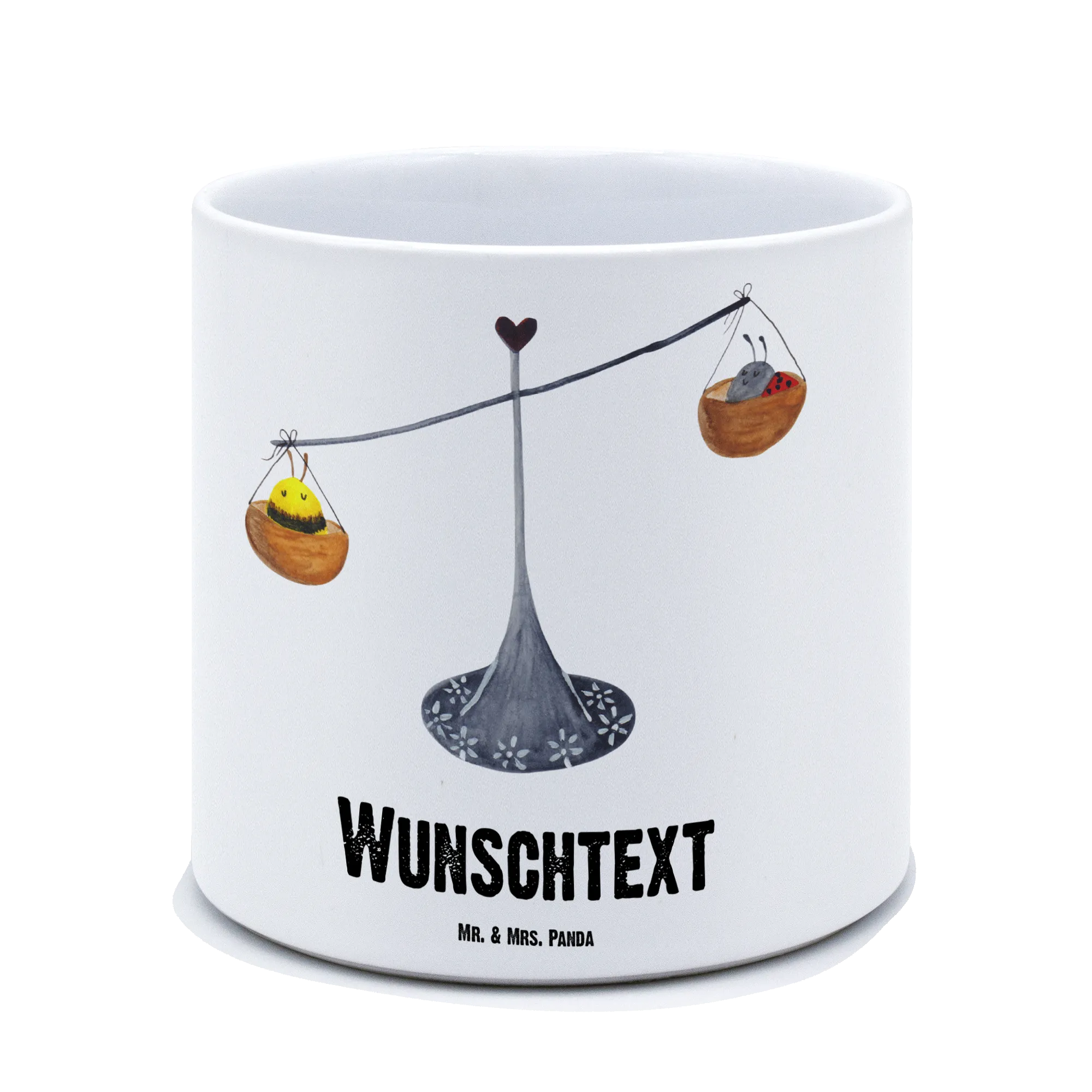 Das liebevoll handgezeichnete Waage-Motiv symbolisiert Harmonie und Gleichgewicht – Eigenschaften, die besonders dem Sternzeichen Waage zugeschrieben werden. Ein niedlicher Marienkäfer und eine Hummel balancieren das Motiv perfekt aus und regen die Fantasie an. Mit dem Slogan 'Charmant und warmherzig wie eine Waage' wird jeder, der diesen Topf erhält, an die positiven Eigenschaften dieses Sternzeichens erinnert.