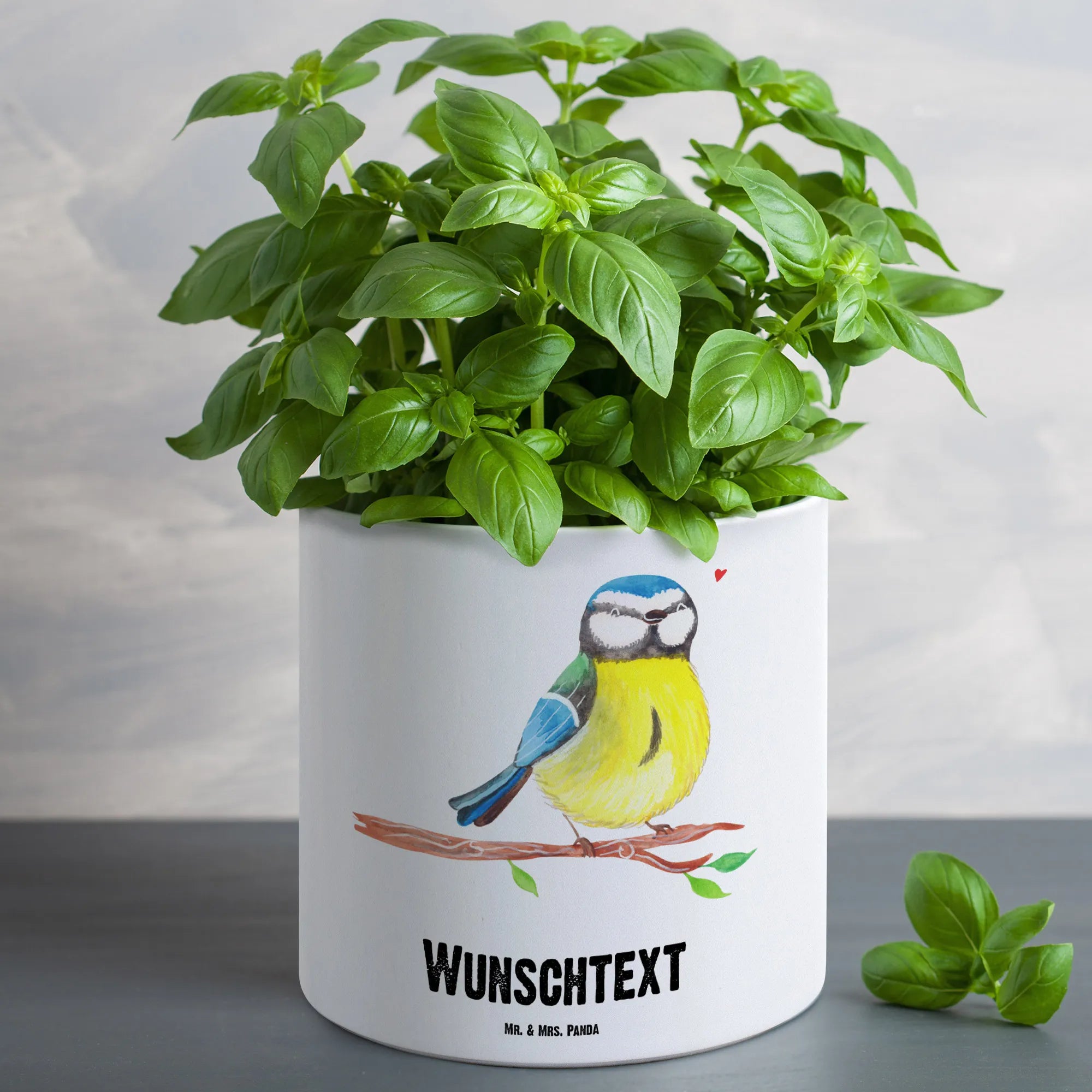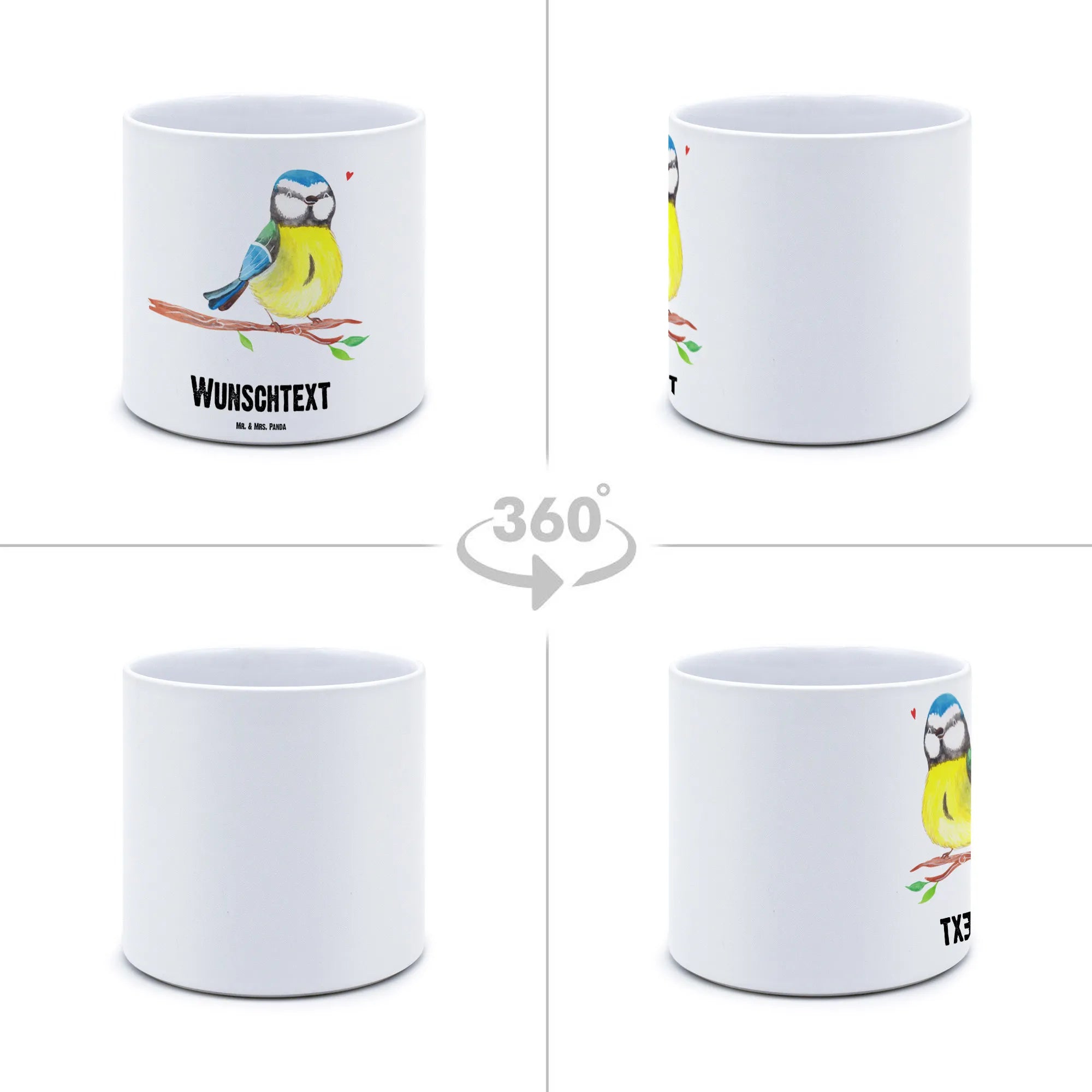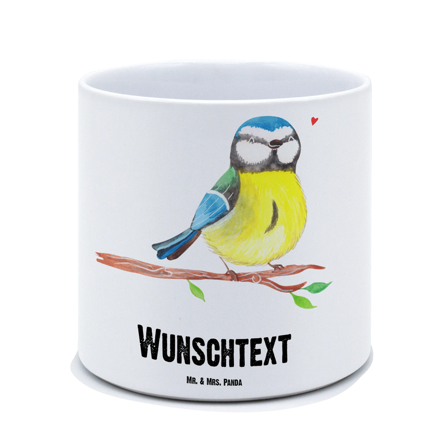 Personalisierter XL Blumentopf Vogel Blaumeise