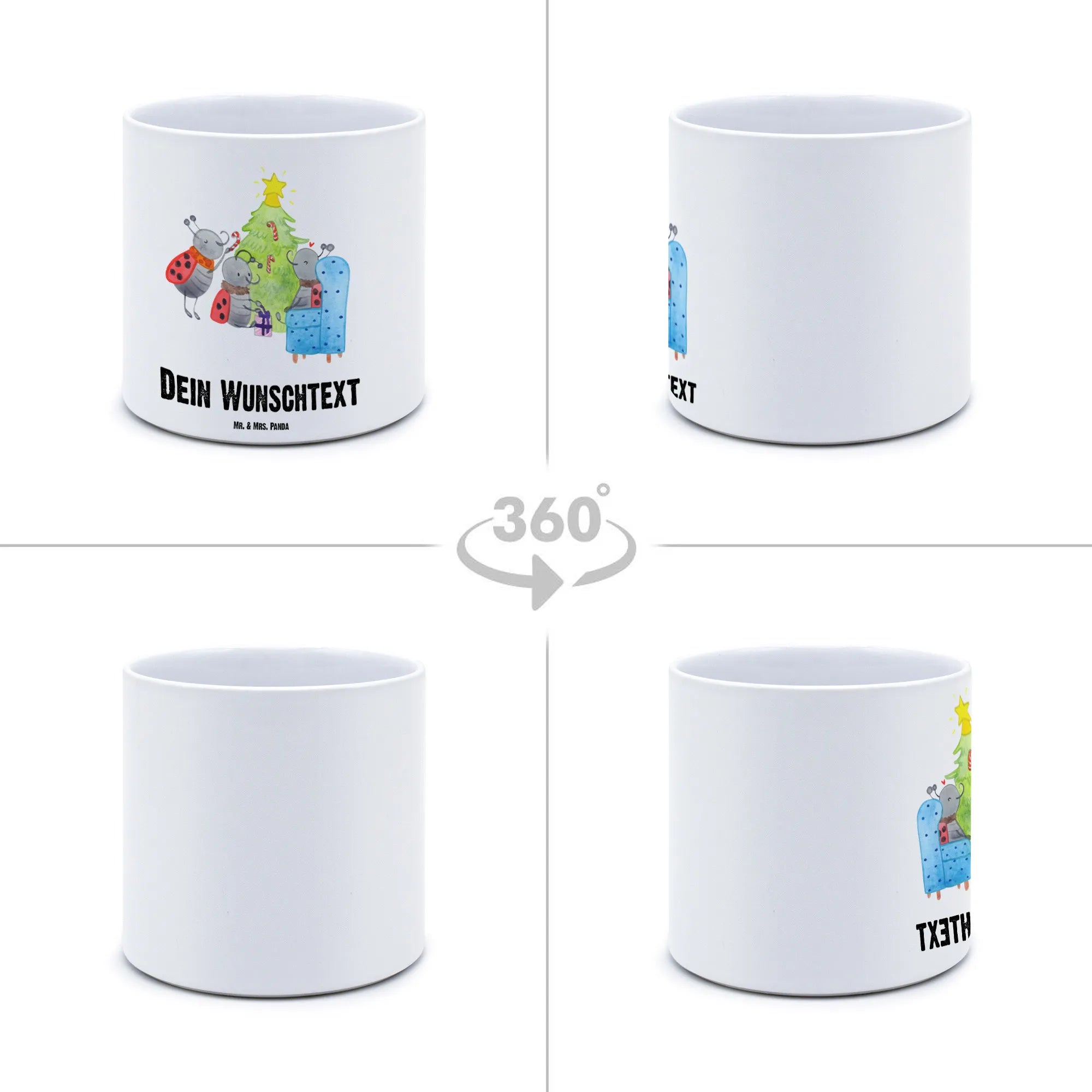 Der personalisierte XL Blumentopf Weihnachten Smörle von Mr. & Mrs. Panda ist das perfekte Geschenk für die besinnliche Winterzeit. Er begeistert mit einem handgezeichneten, liebevollen Motiv, das kleine Marienkäfer zeigt, die um einen festlich geschmückten Weihnachtsbaum herumwuseln. Diese fröhlichen Gesellen bringen euch nicht nur zum Schmunzeln, sondern wecken auch wunderschöne Kindheitserinnerungen an das große Fest. Mit der Aufschrift 'Wir wünschen dir und deiner Familie wundervolle Weihnachtstage und einen guten Rutsch in ein magisches neues Jahr!' wird dieser Blumentopf zu einem ganz besonderen Geschenk, das von Herzen kommt.