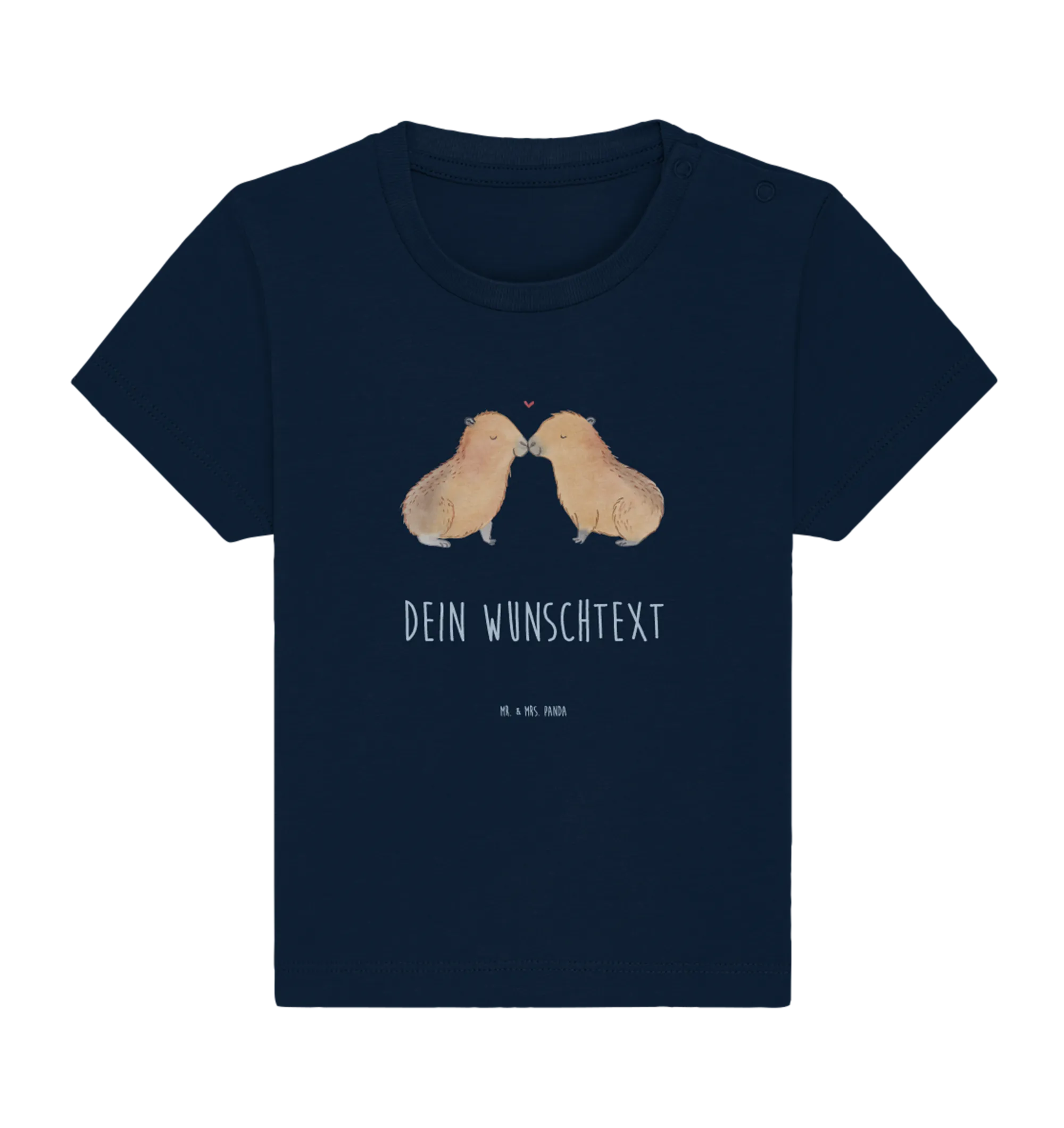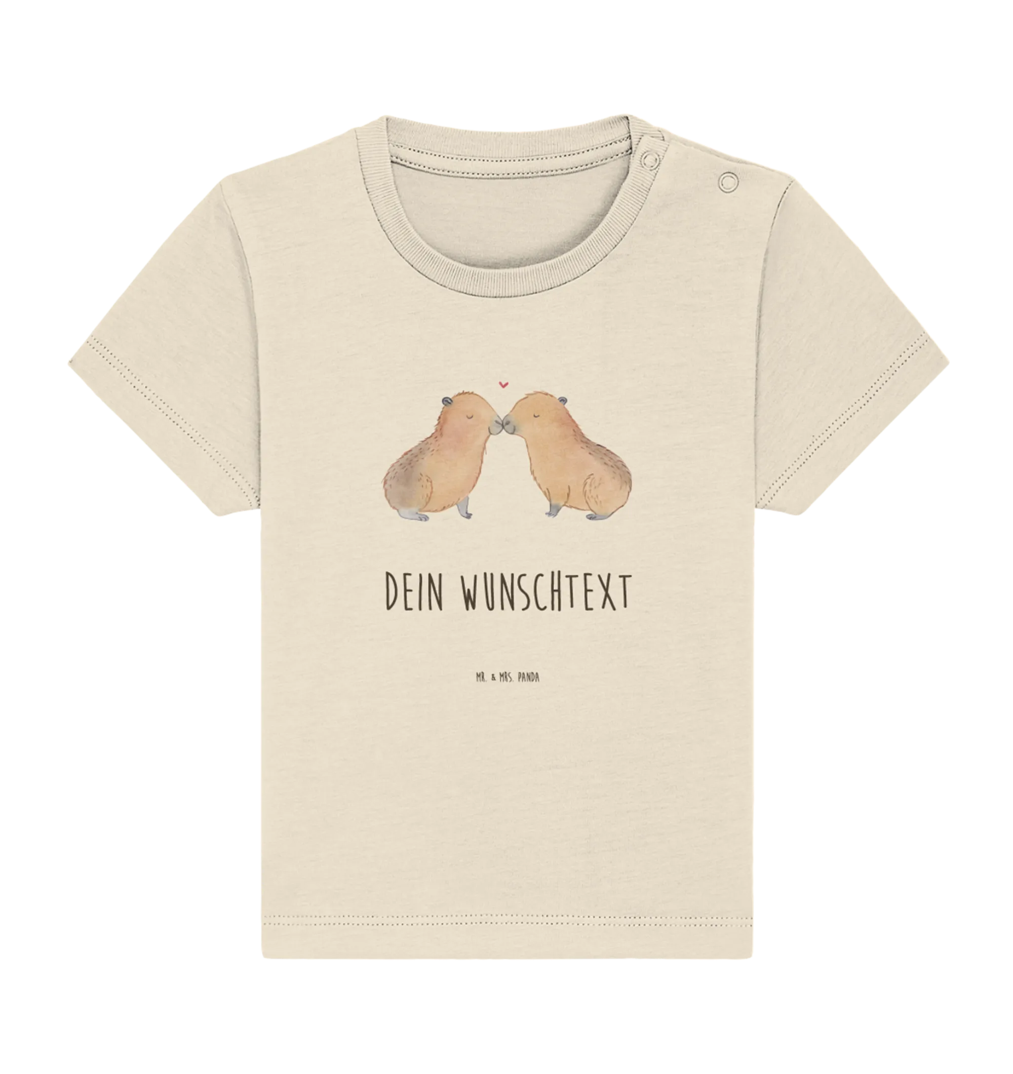 Das personalisierte Baby T-Shirt mit dem liebevollen Motiv "Capybara Liebe" von Mr. & Mrs. Panda ist perfekt für kleine Kuschelfans!
