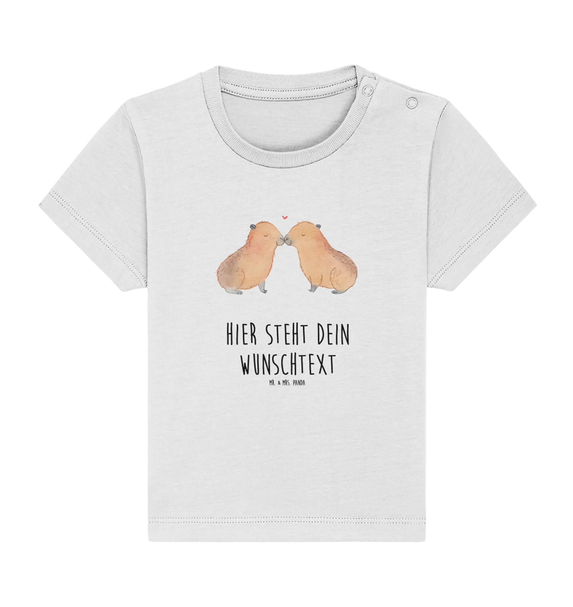 Suchst du nach einem perfekten Geschenk für dein kleines Liebling? Dann ist das personalisierte Baby T-Shirt mit dem zauberhaften Motiv "Capybara Liebe" von Mr. & Mrs. Panda genau das Richtige!