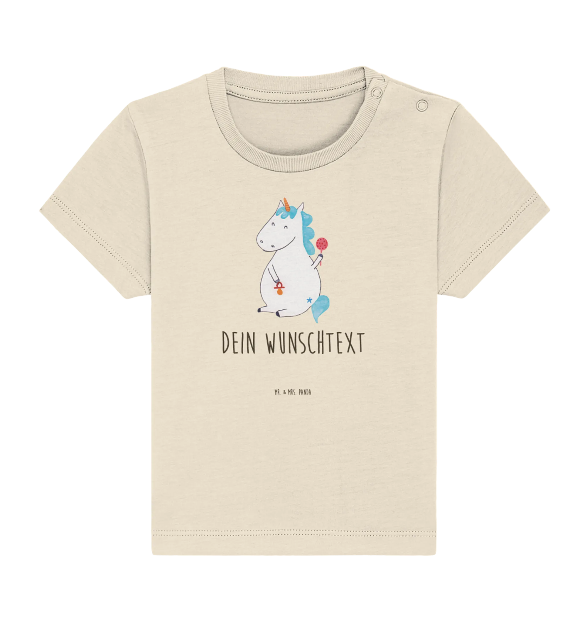 Mit seinem unisex Design ist das T-Shirt perfekt für Babys jeden Geschlechts – sei es ein Jungen Baby T-Shirt oder ein Mädchen Baby T-Shirt. Die Einhorn-Kollektion von Mr. & Mrs. Panda ist vollgepackt mit liebevoll gestalteten Produkten und eignet sich hervorragend als Geschenk für Baby-Partys oder zur Erstausstattung. Kombiniere das T-Shirt mit einem Schnuller und Lätzchen für die perfekte Geschenkbox!
